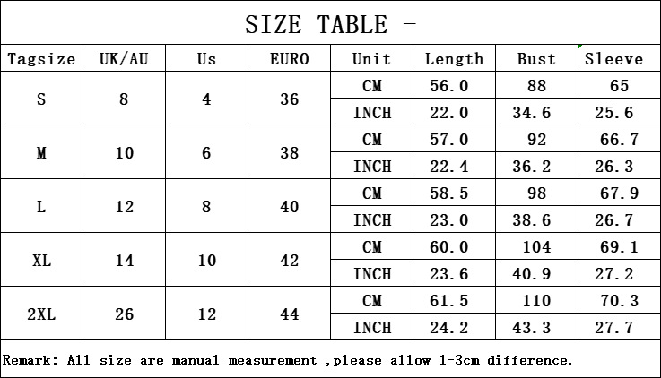 1. Asian sizes are 1 to 2 sizes smaller than European and American people. Choose the larger size if your size between two sizes. Please allow 2-3cm differences due to manual measurement. 2. Please check the size chart carefully before you buy the item, if you don't know how to choose size, please contact our customer service. 3.As you know, the different computers display colors differently, the color of the actual item may vary slightly from the following images.
