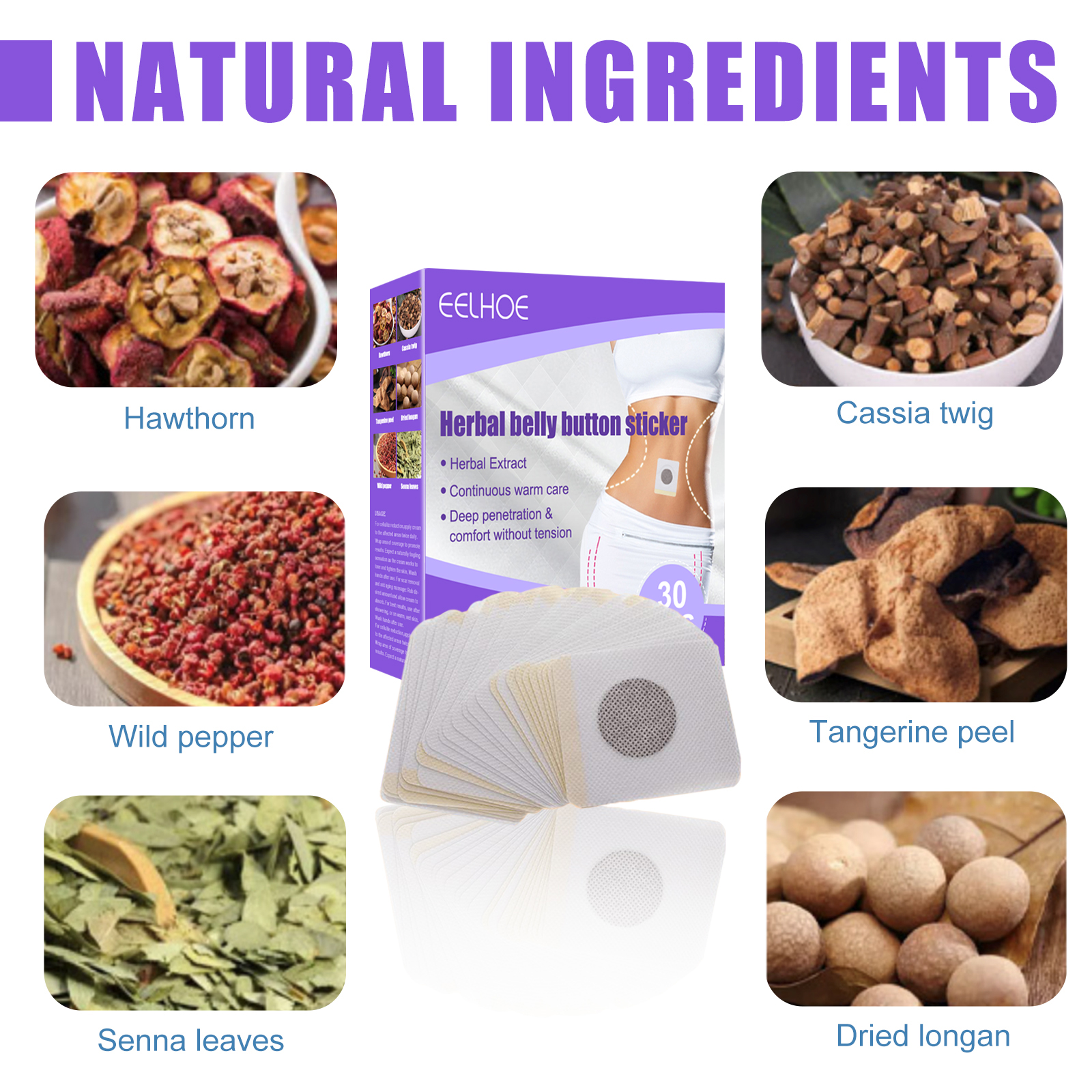 Our Shape-contouring belly button stickers contain hawthorn, wild mountain pepper and senna leaf. It can deeply nourish the skin, improve the dry and rough state of the skin, quickly remove fat waste in the body, effectively control fat growth, burn excess fat, and keep the body perfect. Its application method is simple: first clean the area of the patch and wait to dry, strip the adhesive, carefully attach the sticker to one of the recommended body parts, then press the sticker for a few minutes to ensure that they stick together, leave it for 1-3 hours to remove it. After use, promote weight loss, prevent weight gain, temporarily reduce appetite, and speed up metabolism to make the body slimmer.