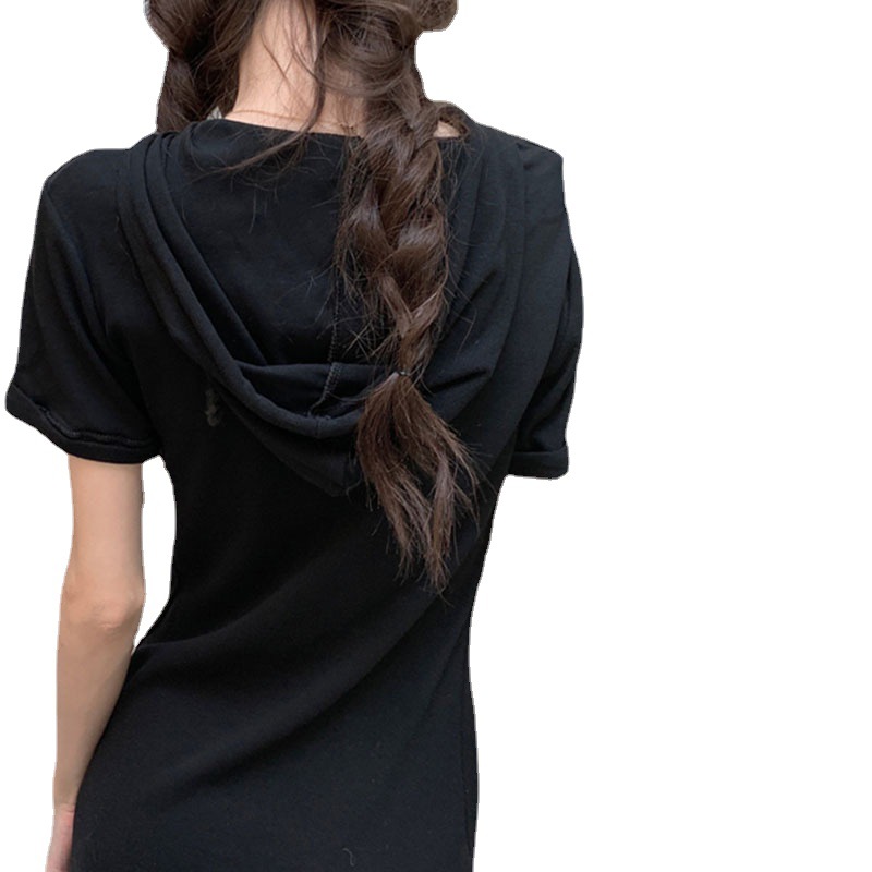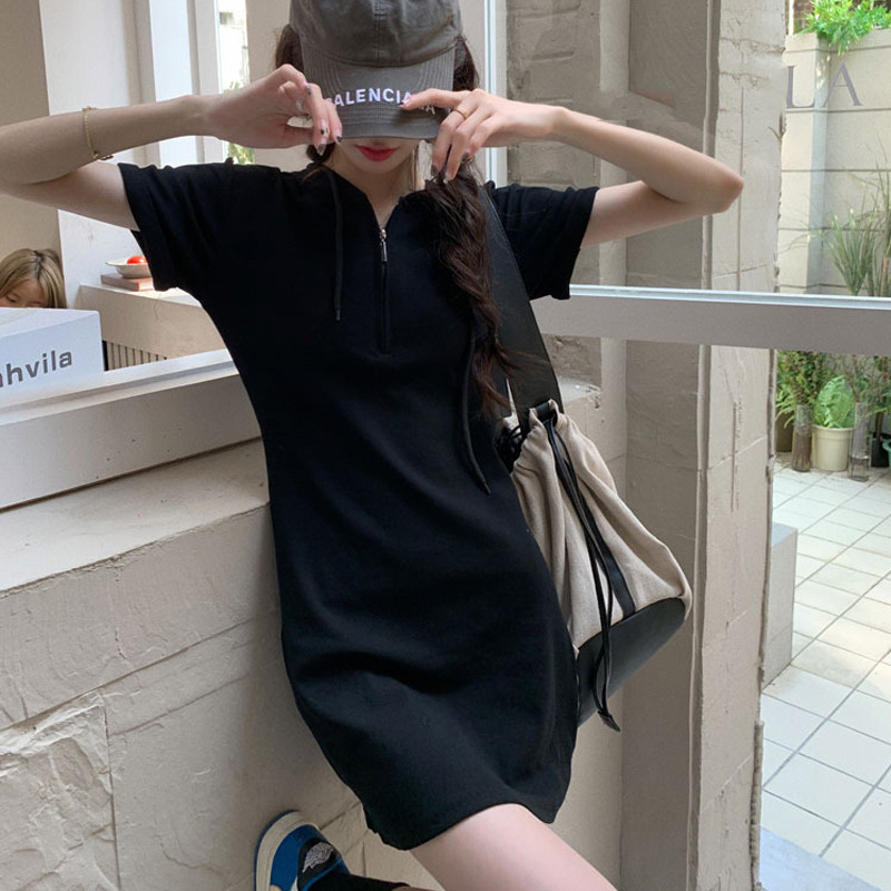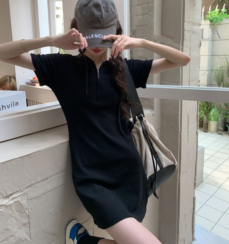 Slimming Sweet And Spicy Solid Color Short Sleeve Skirt