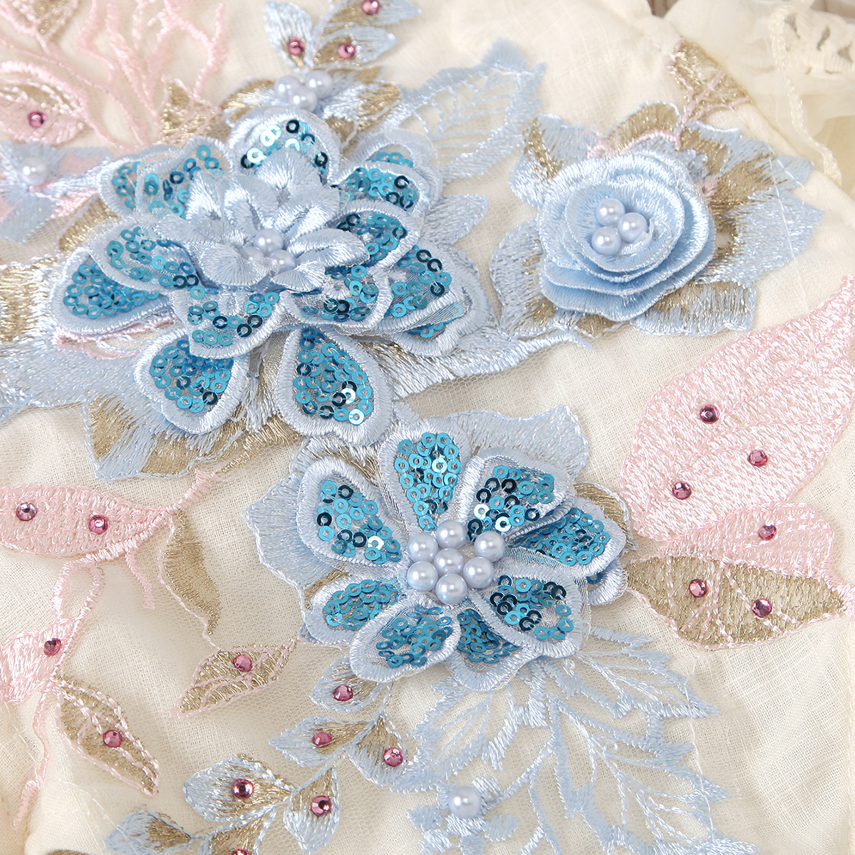 Sling Embroidered Beaded Petal Mesh Pattern Skirt