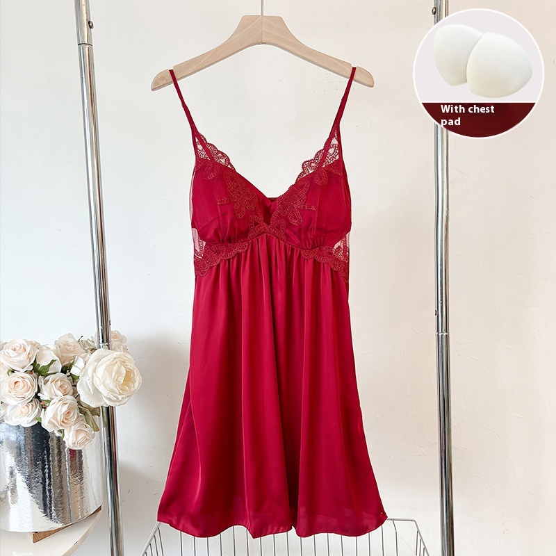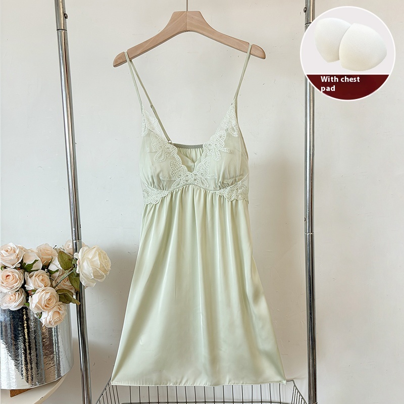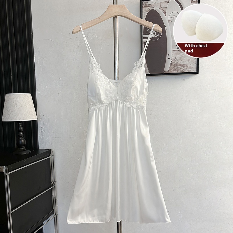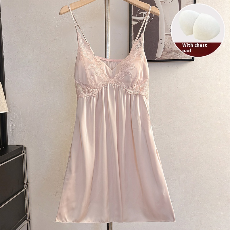Slip Nightdress Ice Silk With Chest Pad For Women