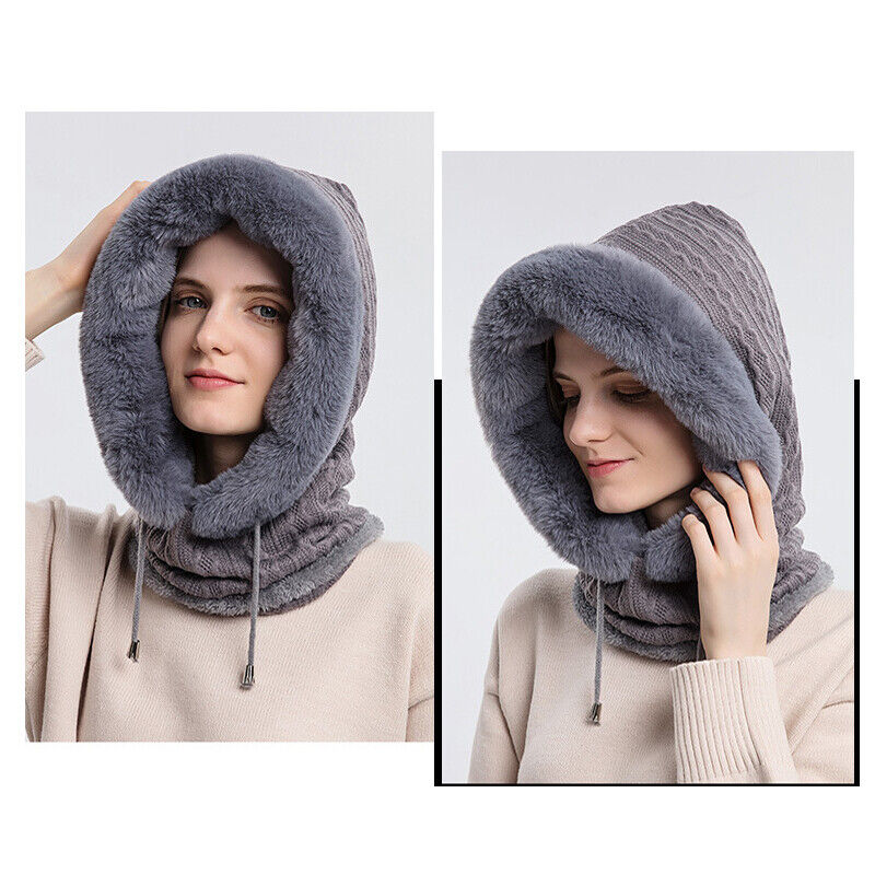 One size fits head circumference: 56 - 59 cm / 20.04 - 23.23 in, drawstring closure, warm women cable knitted fleece hat, scarf covers your ears and face to protect against cold winds, lightweight, not too bulky or heavy but extra warmer.