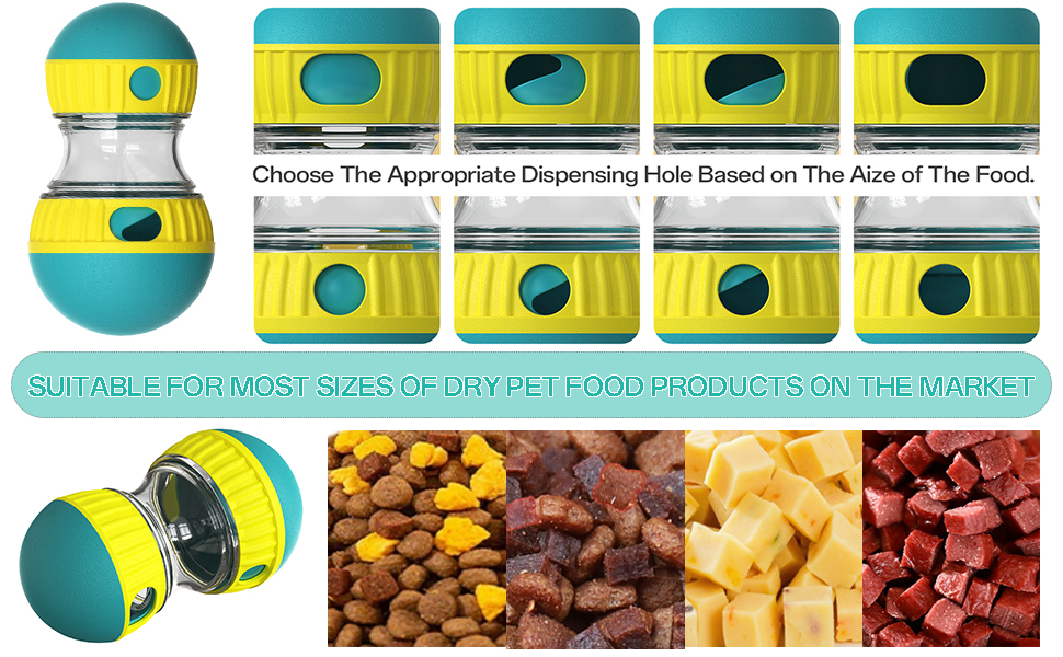 ADJUSTABLE SIZE & WASHABLE - This dog food puzzle toy, dog puzzle feeder, and dog feeder puzzle has dual exit chambers for all sizes of pet dry food, jerky, or snack cookies. You can very easily change the size to make it more difficult to control the amount of food dispensed and to lengthen or shorten the time it takes your pet to get food. It disassembles for washing and is fully washable. It's also great for dog puzzles for smart dogs.