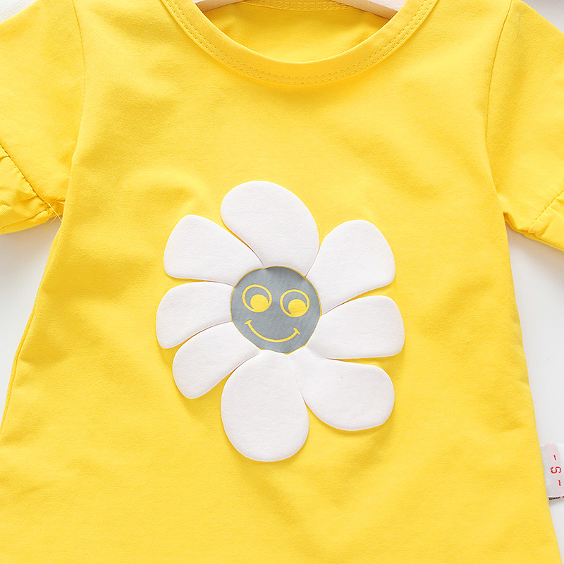 Color: BD43 one-piece flower short sleeve/white, BD43 one-piece flower short-sleeve/pink, BD43 one-piece flower short-sleeve/yellow