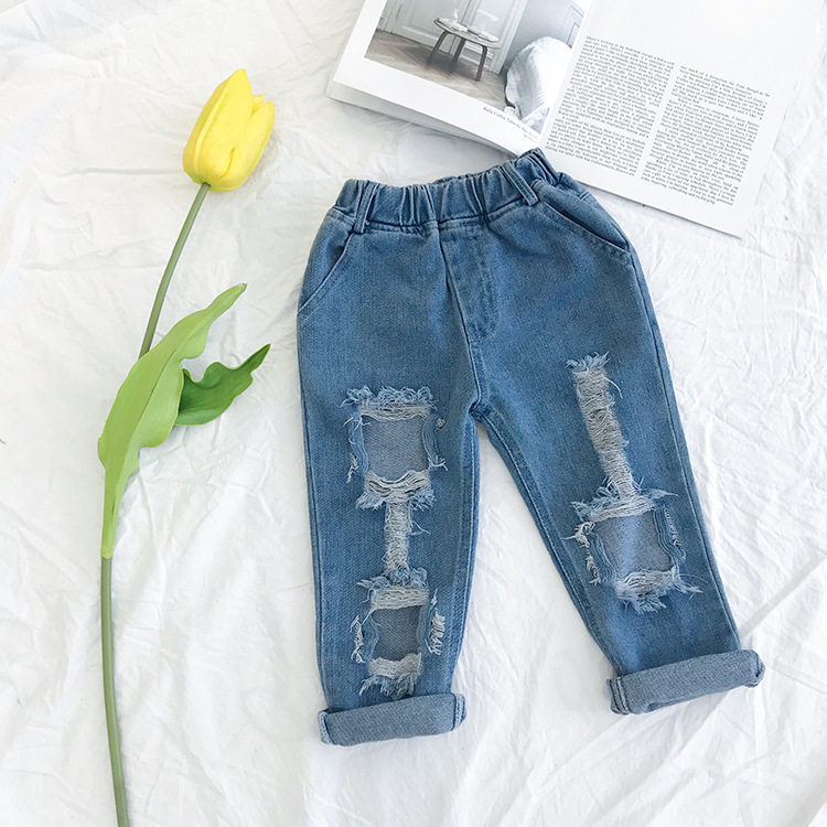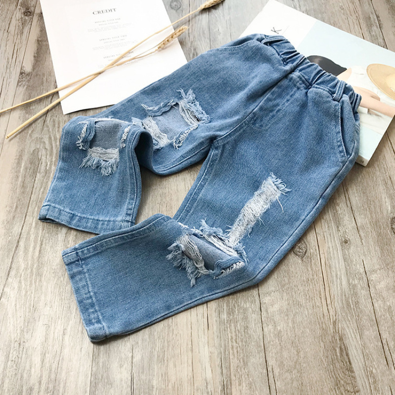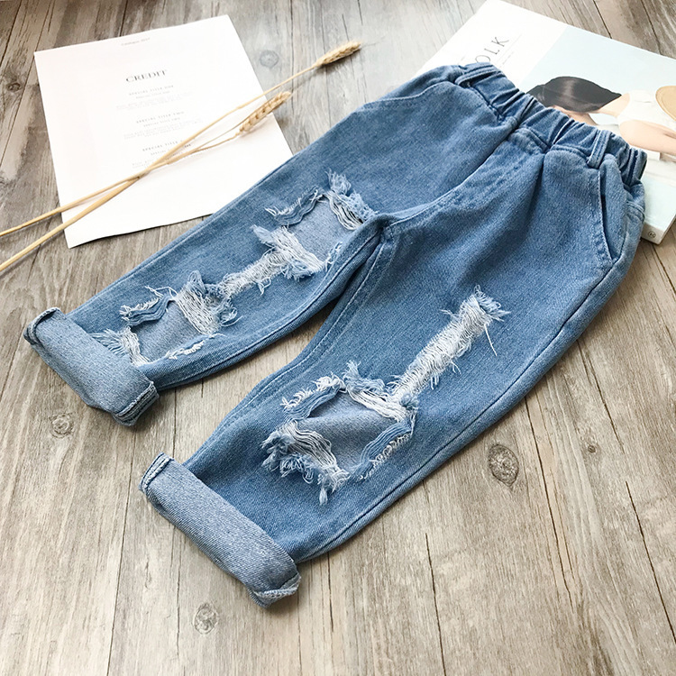 Small And Medium-sized Children's Ripped Loose Jeans