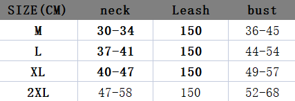 Specifications (L*W):S [recommended bust 36-46cm/weight 5-8 catties], M [recommended bust 45-54cm/weight 9-16 catties], L [recommended bust 49-57cm/weight 16-22 catties], XL [recommended bust 52 -68cm/weight 20-30 catties]