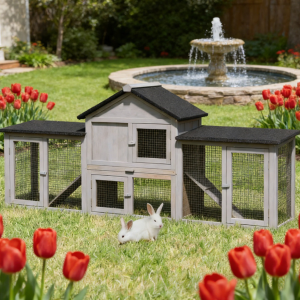 - The rabbit hutch includes a raised perch to keep your small animals safe, cool on sunny days and dry on rainy days