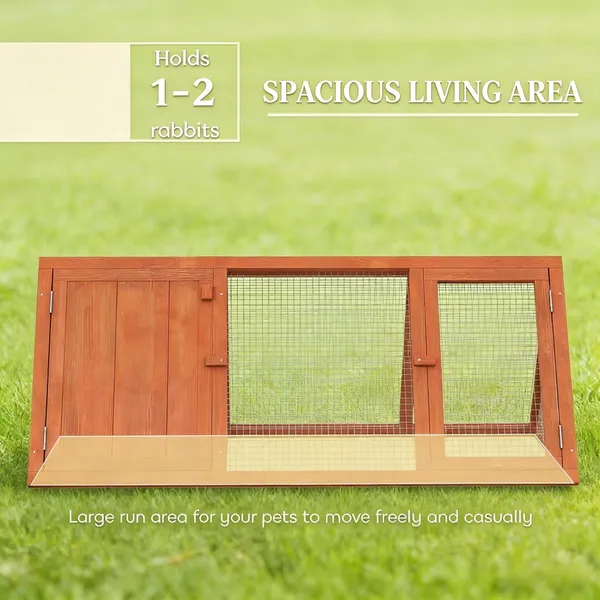 Features: - Features a private sleeping house and a spacious run for natural behaviors - Lightweight triangular design is easy to move for fresh grazing every day - Two access doors with latches allow for easy cleaning and pet access - Stable fir wood and dense wire mesh protect your beloved pet from predators - An internal door connects both areas for your pet to roam freely - Assembly required Specification: - Color: Orange - Material: Fir Wood, Wire Mesh - Overall Dimension: 45.1" L x 20.5" W x 17.9" H - Main House Dimension: 13.8" W x 20.5" D x 17.9" H - Run Box Dimension: 31.3" W x 20.5" D x 17.9" H - Door Size: 11.2" W x 17.9" H - Internal Door Size: 6.3" W x 7.7" H