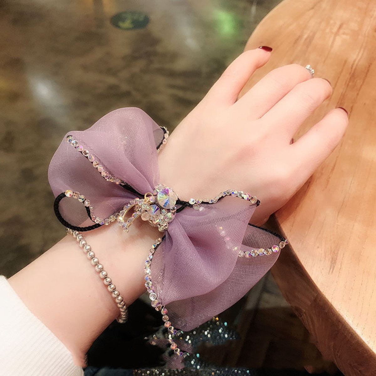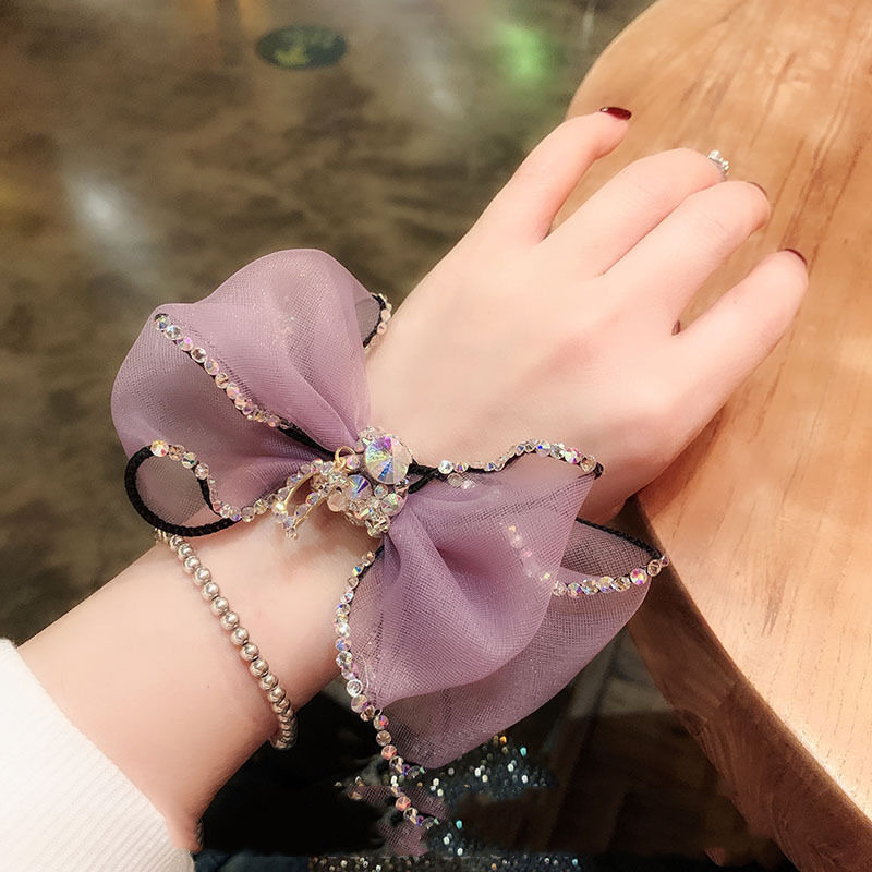 Color: Super fairy D bow hair rope purple, Super fairy D bow hair rope light pink, Super fairy D bow hair rope black