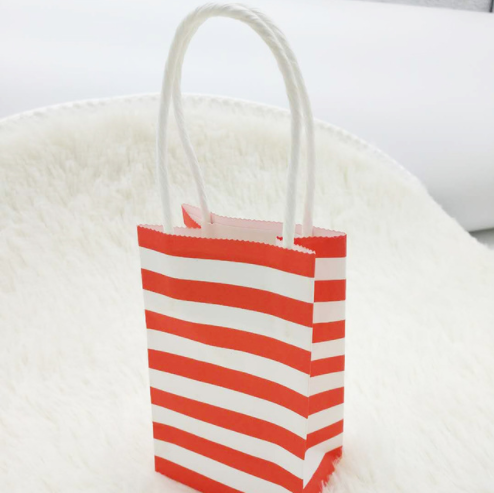 Small candy color striped white kraft paper bag