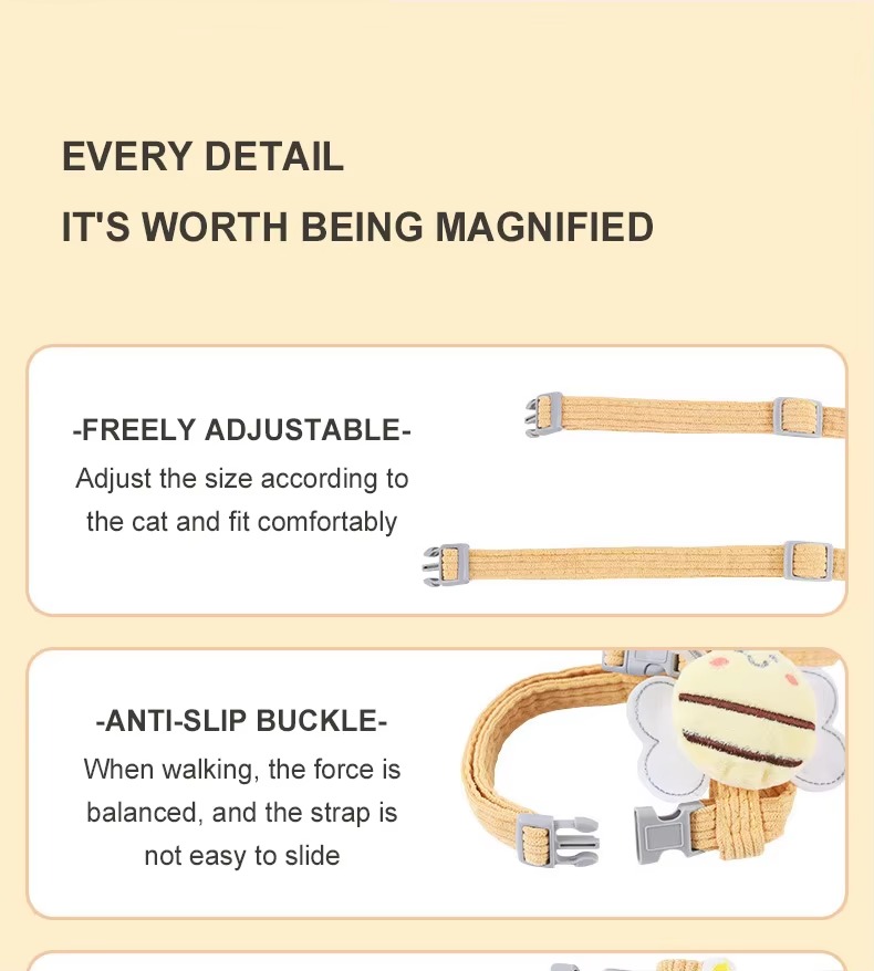 Small Cat Harness Wing Shaped Decorative Walking Vest Traction Rope Set