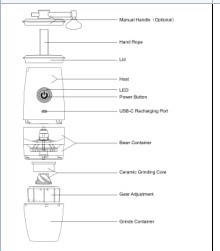 Product packaging-upgraded version: grinder + color box + data cable + small brush + measuring spoon + filter paper + manual rocker