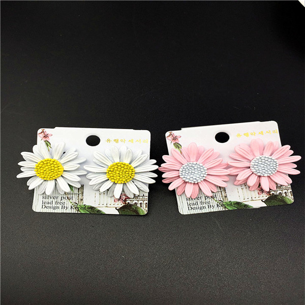 Material: AlloyType: earringsStyle: women's styleModeling: FlowersColor: 18MM white silver needle, 18MM pink silver needle