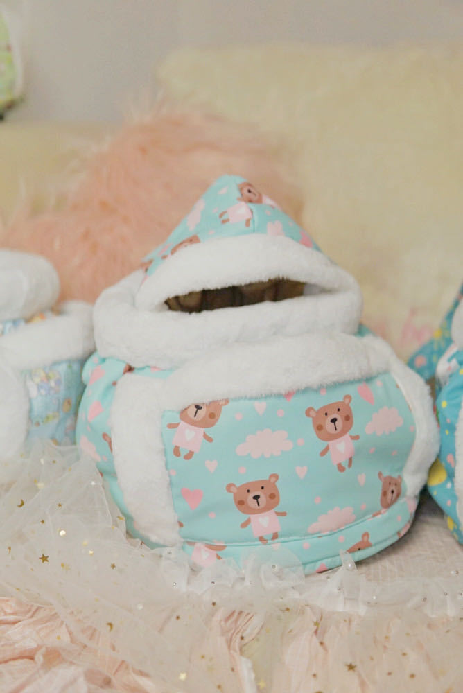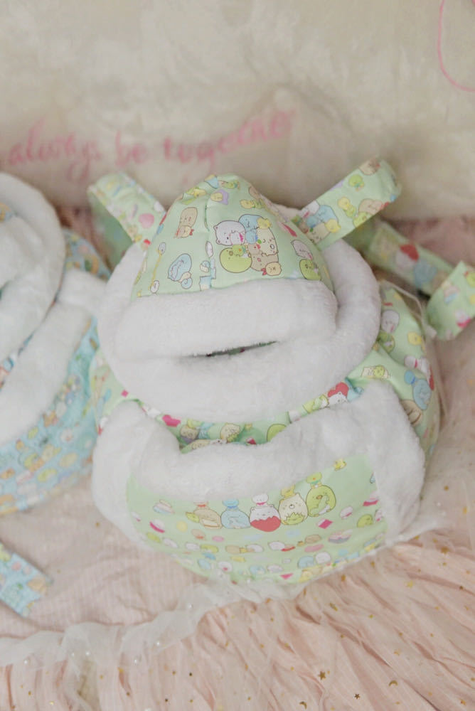 Specifications: blue dots, pink, yellow, pink cat, blue, purple, green, green rabbit, blue bear