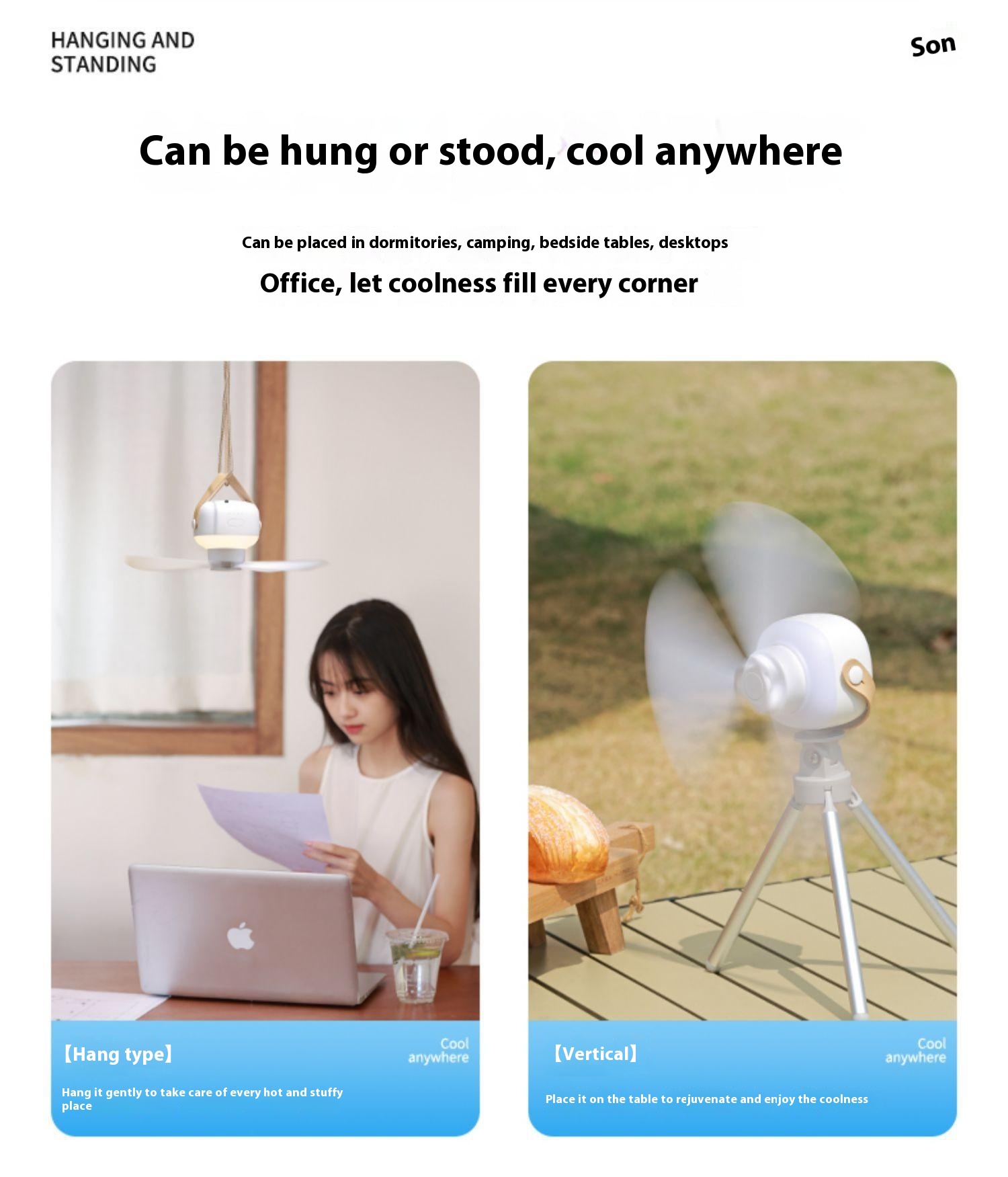 Small Electric Fan Camping Outdoor Tent Ultra-quiet Night Light