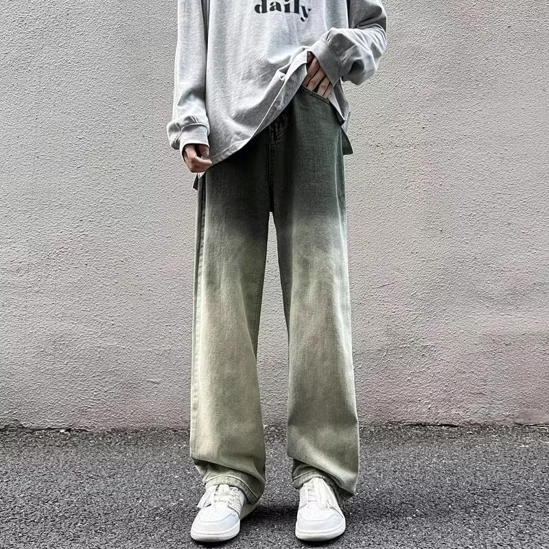 Small Feet Yellow Mud Color Gradient Wide-leg Straight Pants