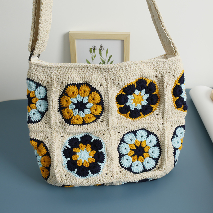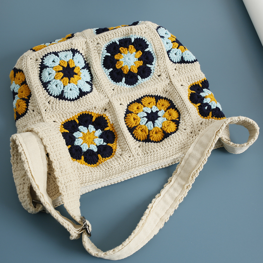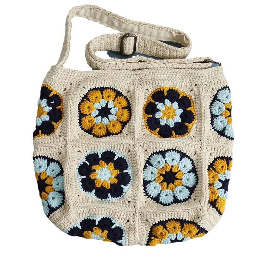 Color: beige blue and white crossbody
