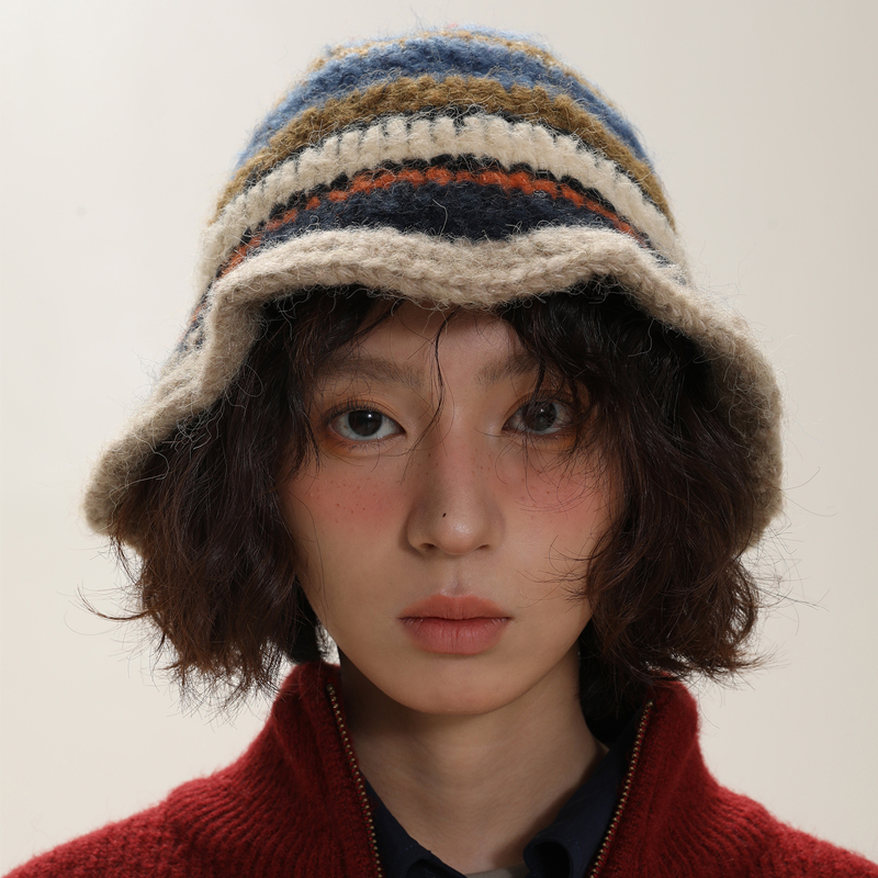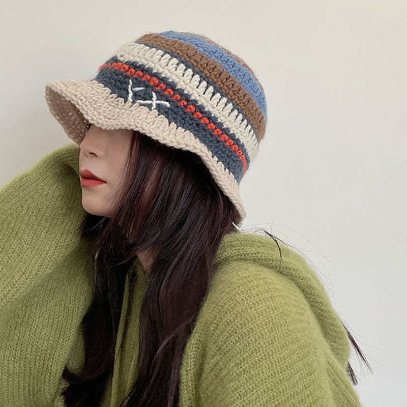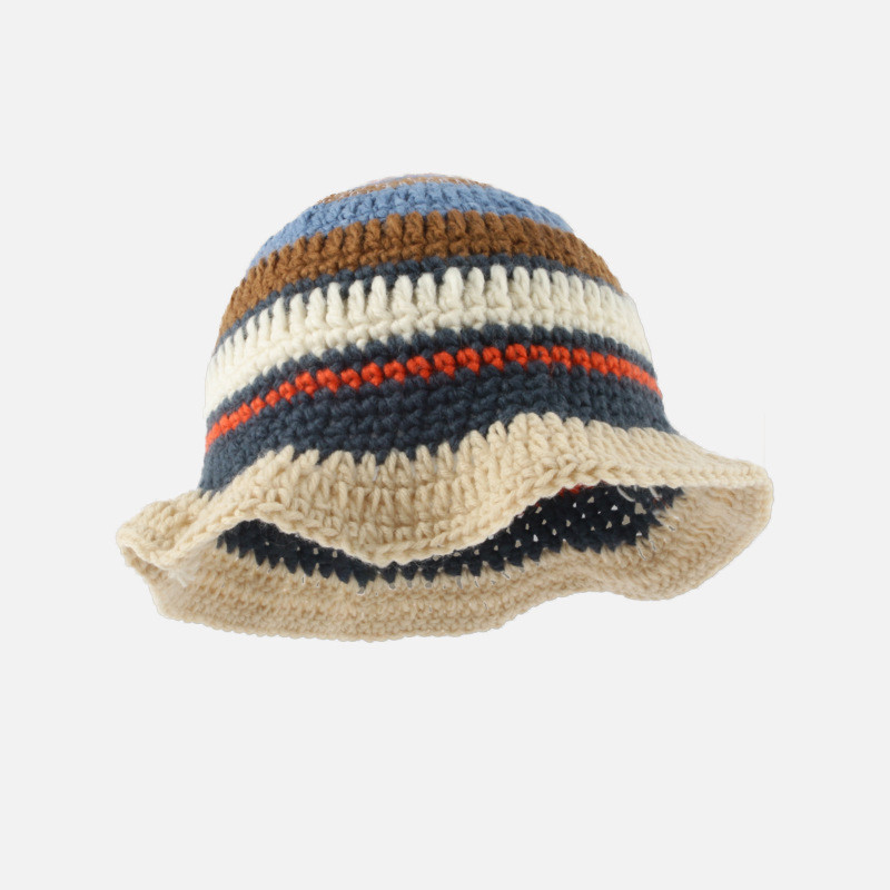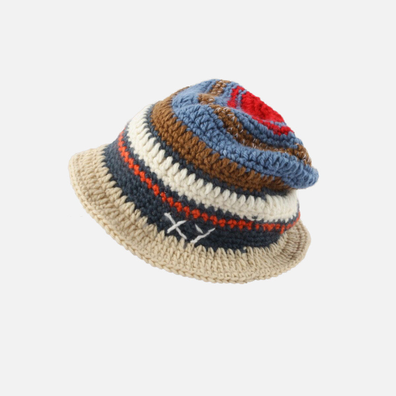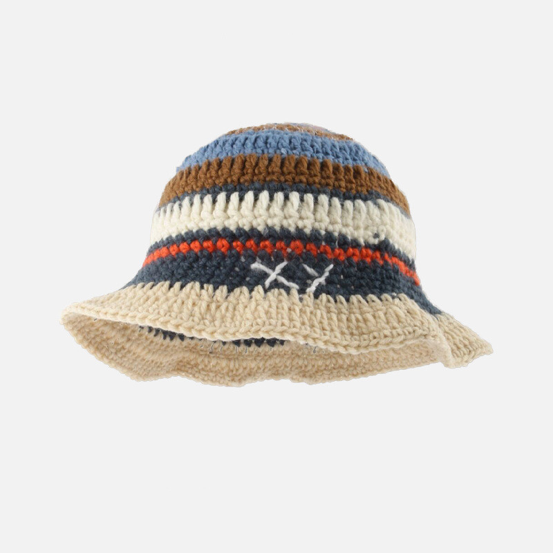 Small Hand Hook Color Stripe Wool Fisherman Hat Children