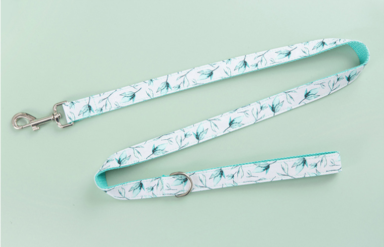 1. Dog Collar and Leash Set with Bow Tie Pretty Tropical Leaves Metal Buckle Big and Small Dog&Cat Collar Pet Accessories