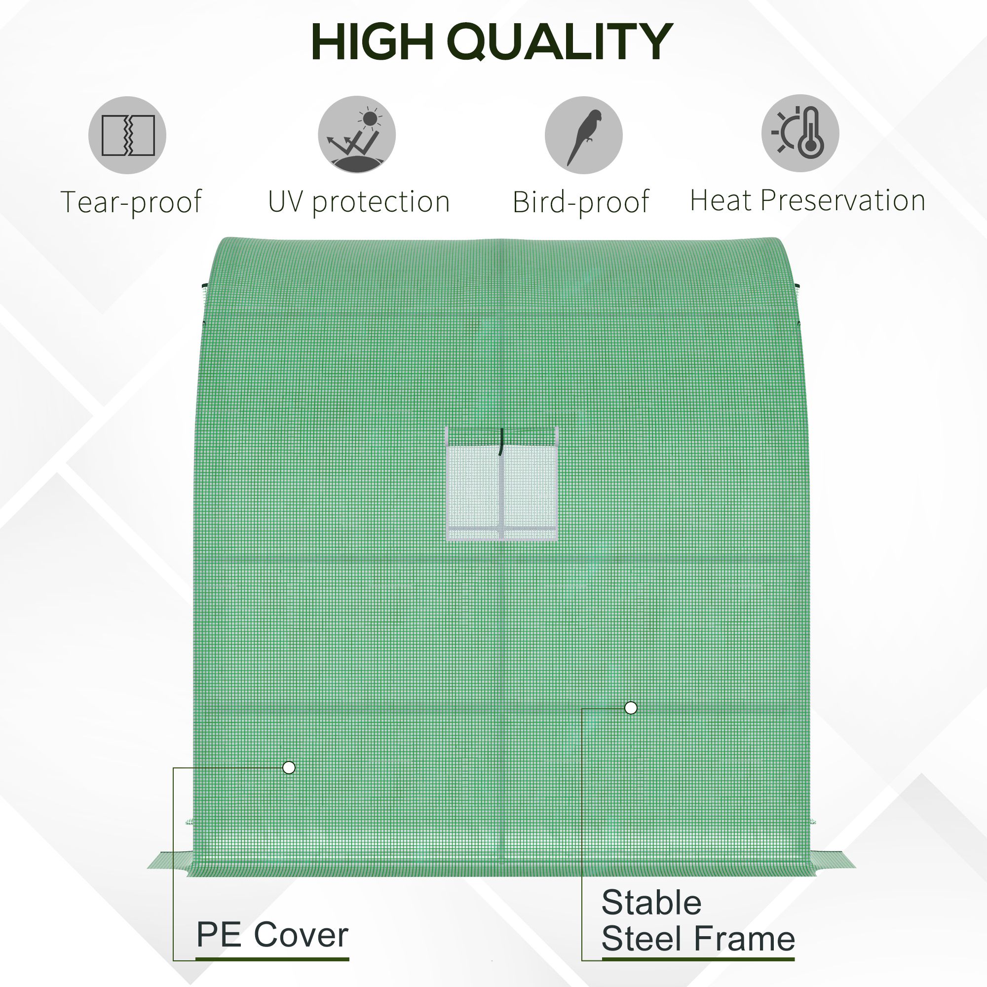 • UV fighting PE plastic cover allows sunlight to pass through