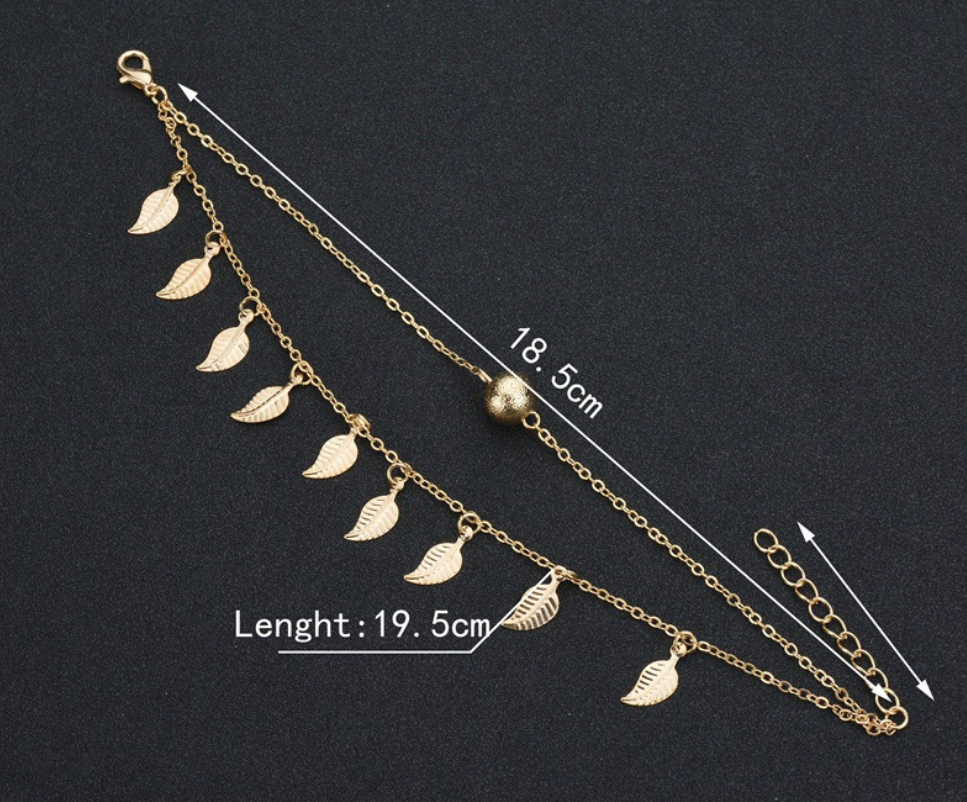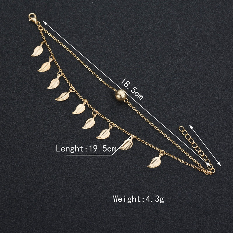 Style: Europe and AmericaMaterial: AlloyTreatment process: electroplating Type: AnkletStyle; women's styleStyling; leavesColor: gold, silver