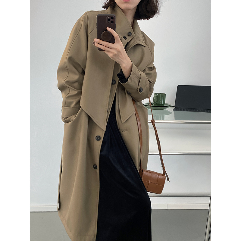 Small Loose With Waist And Slim Mid-length Coat