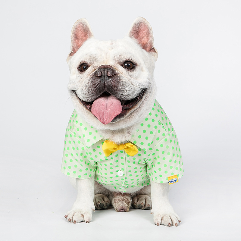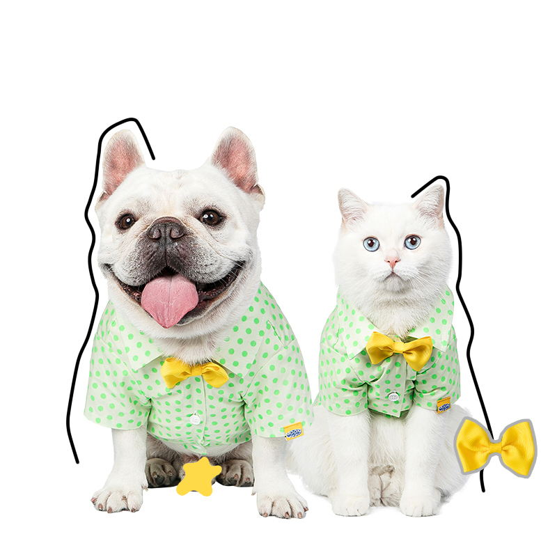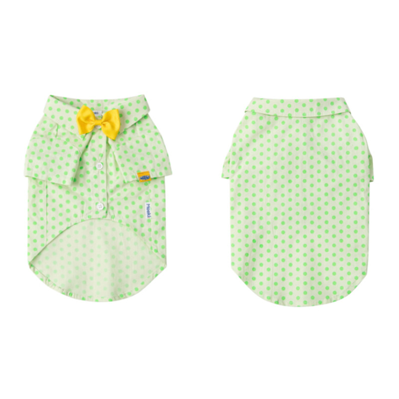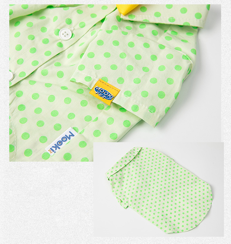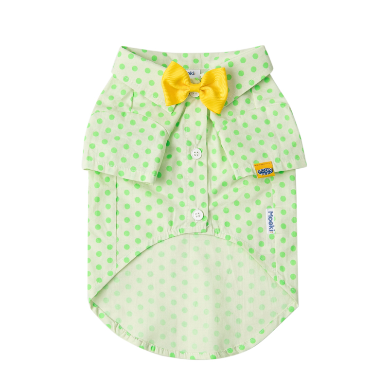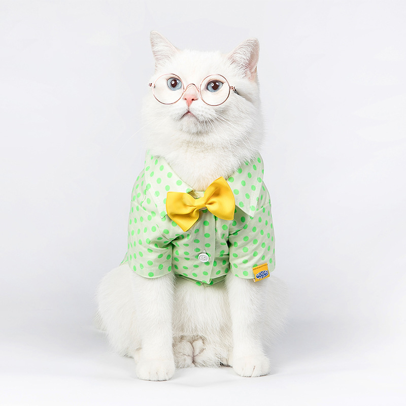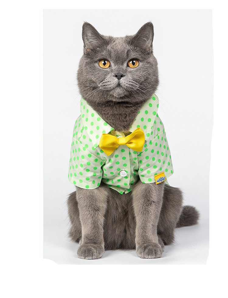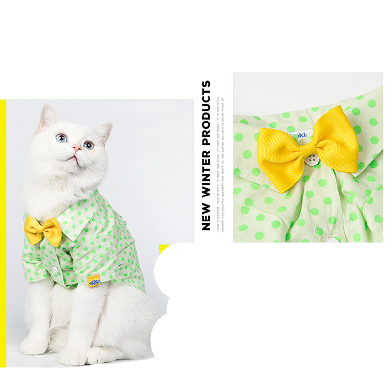Small Medium Sized Cat Green Polka Dot Shirt With Button