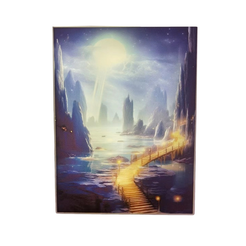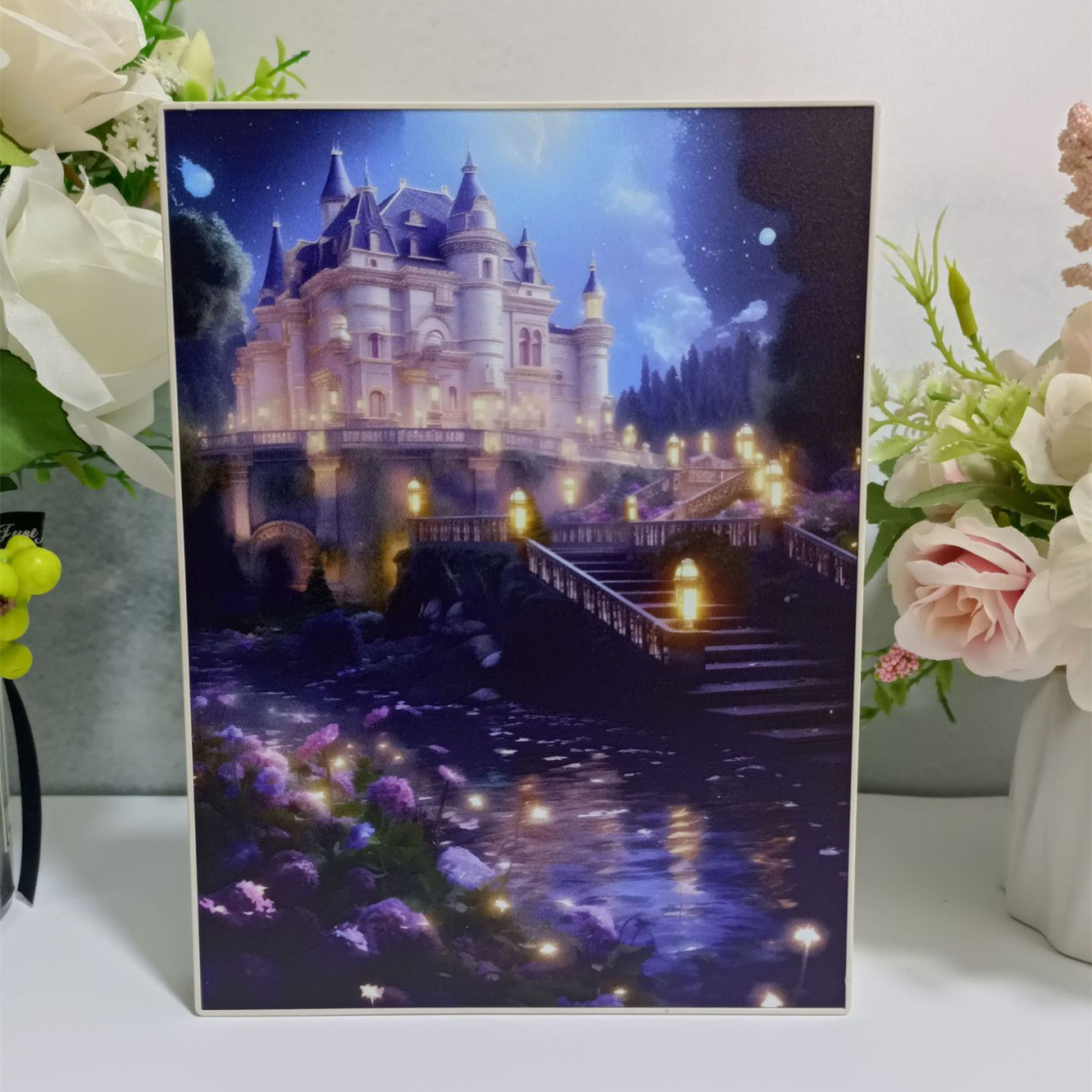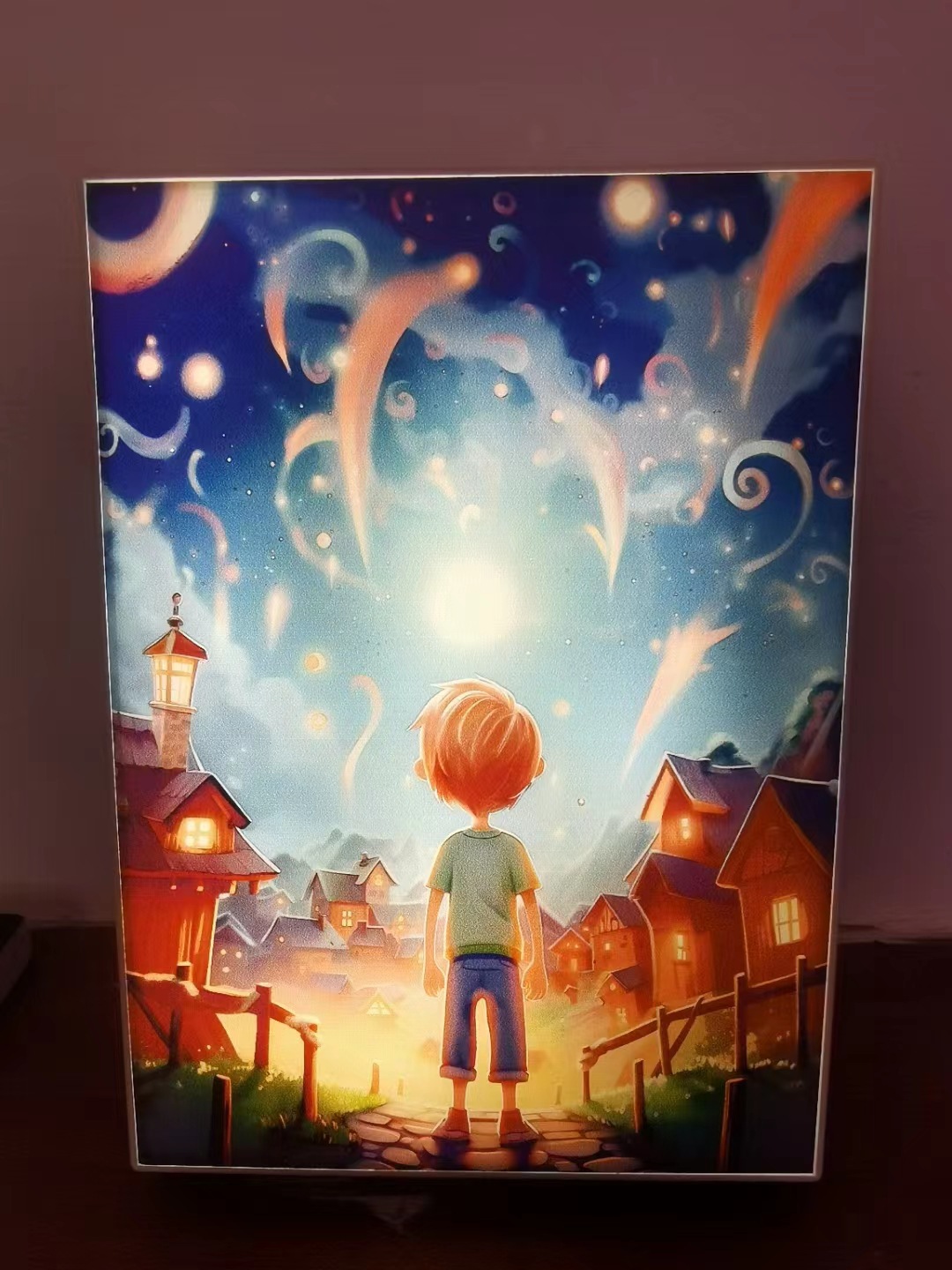Light color: Straw hat teenager, starry sky waterfall, ladder steps, seaside cottage, dream Aurora, teenager, full moon starry sky, Dream Castle