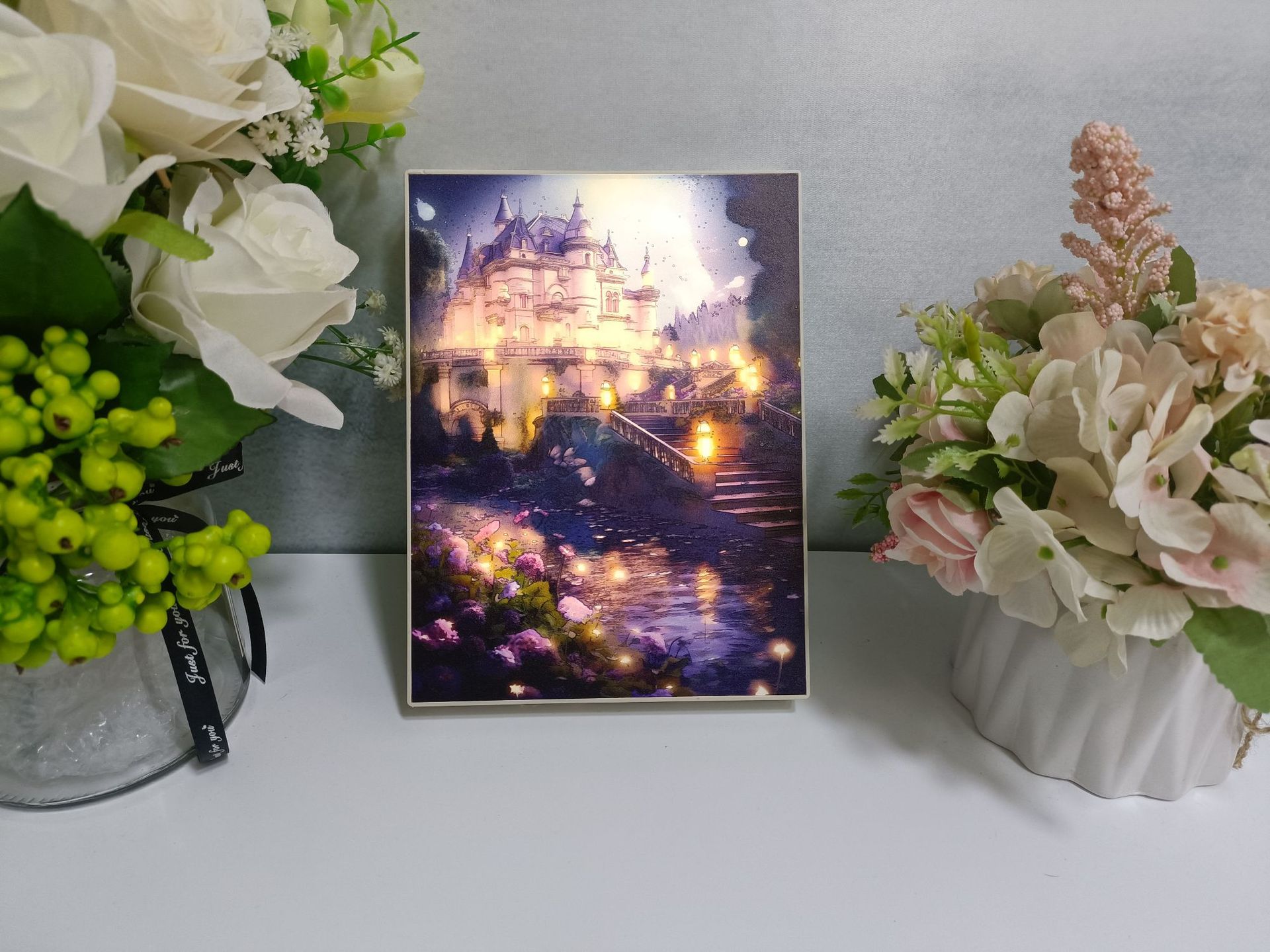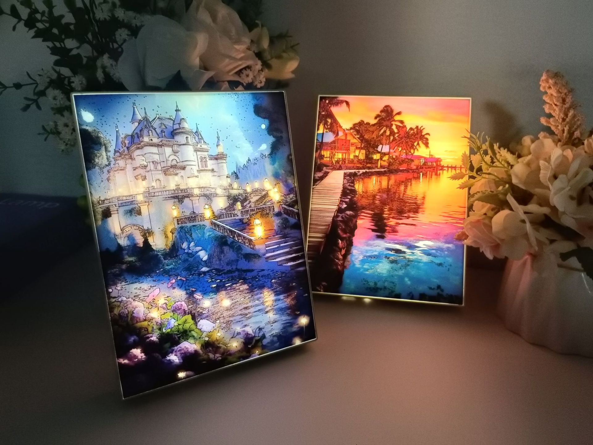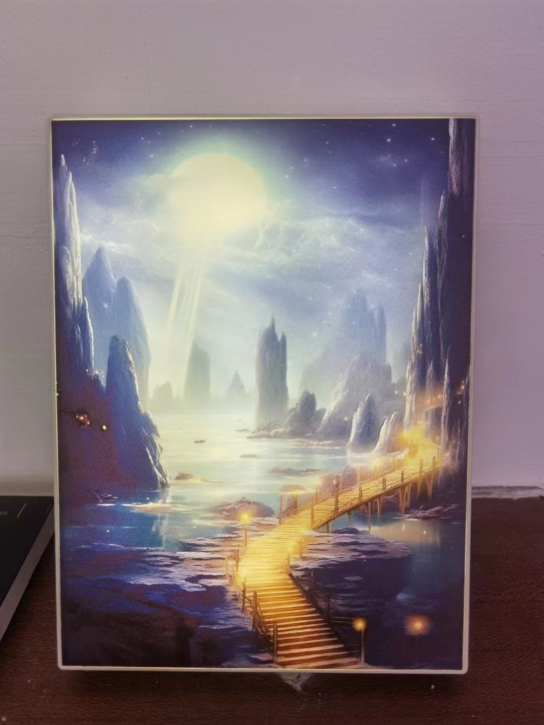 Light color: Straw hat teenager, starry sky waterfall, ladder steps, seaside cottage, dream Aurora, teenager, full moon starry sky, Dream Castle