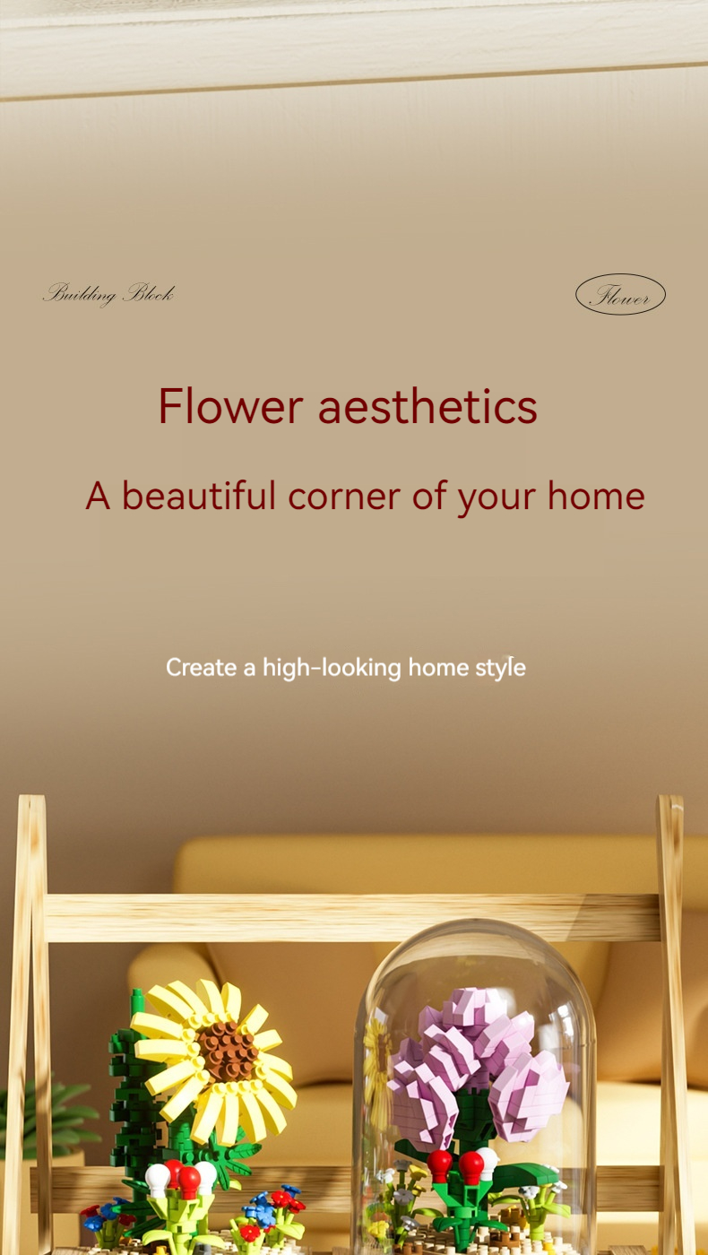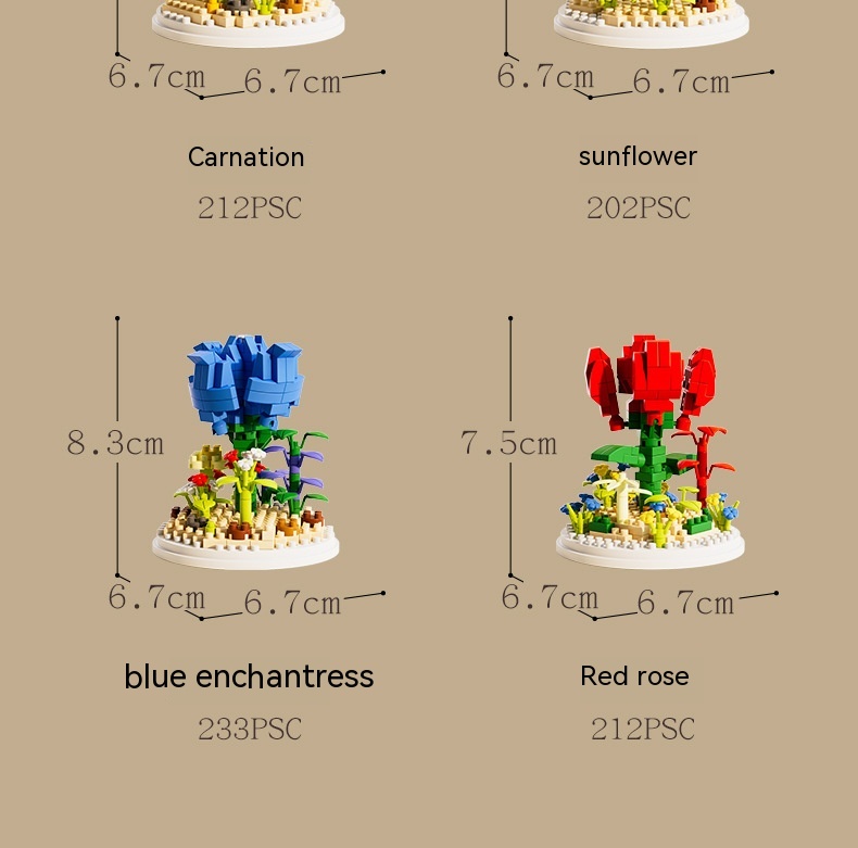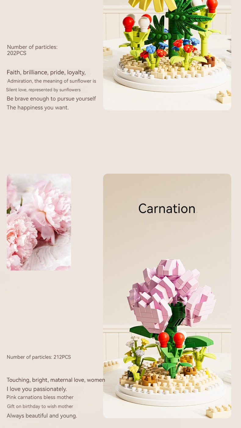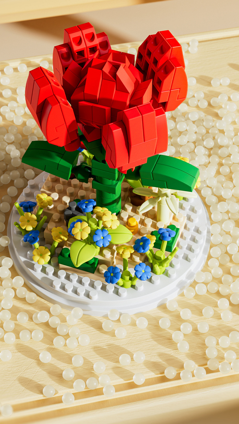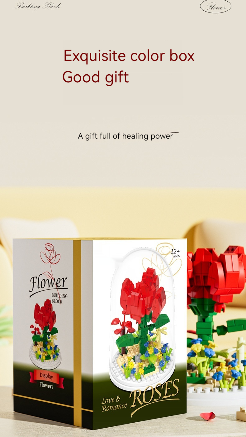 Small Particle Building Blocks Flower Toy Assembled Gift Preserved Flower Ornaments