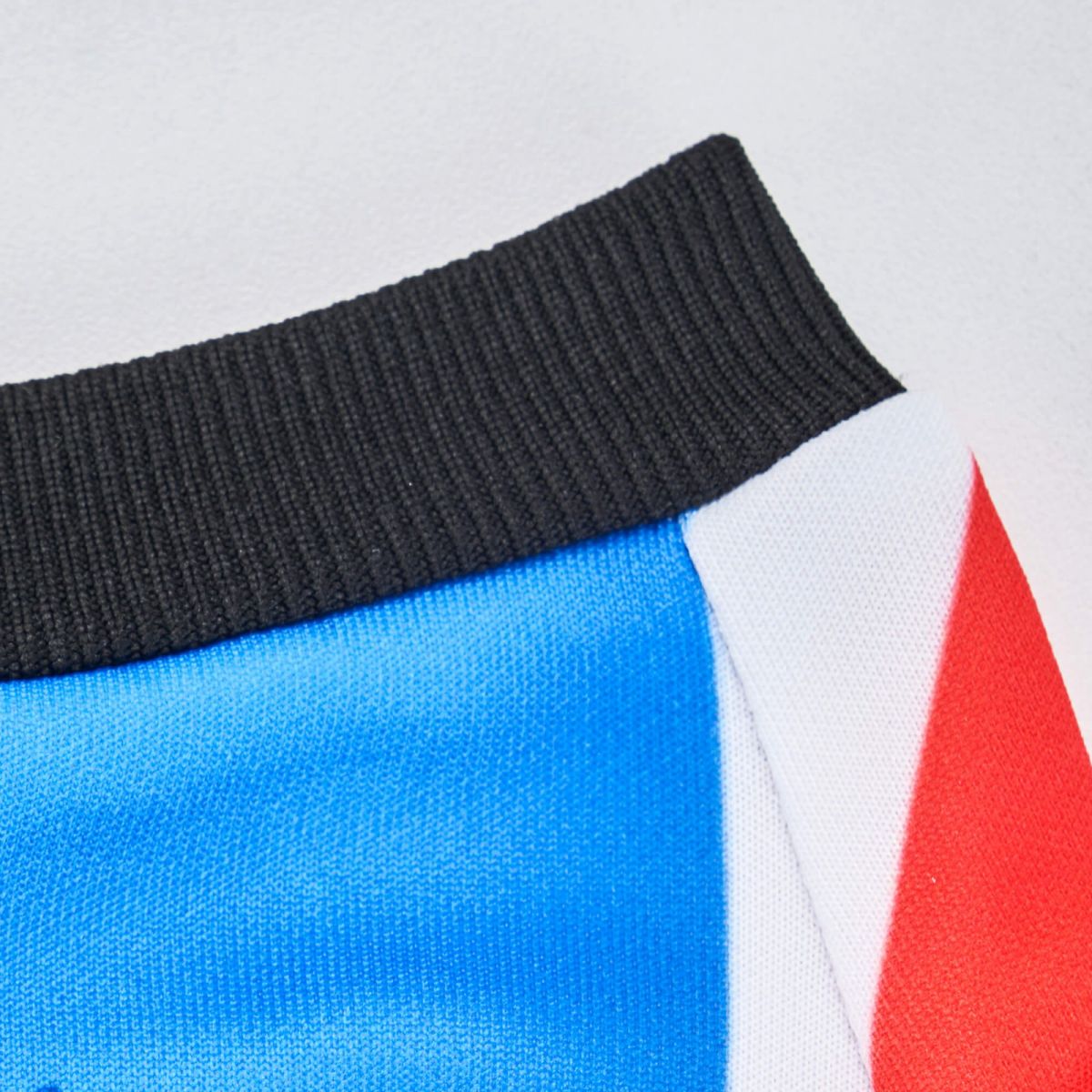 Accessory construction: Ribbed neckline, elasticated cuffs, and open hem.
