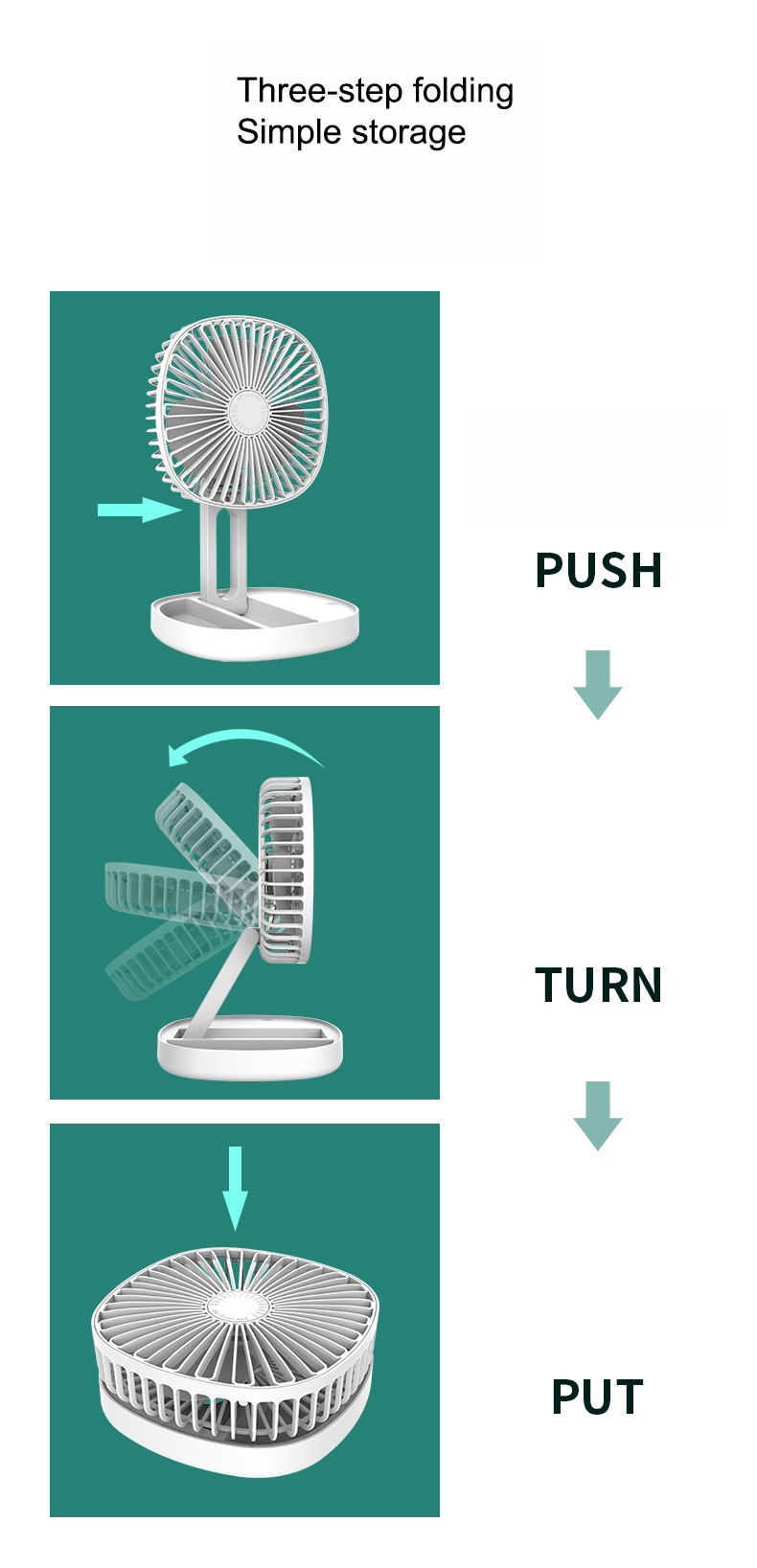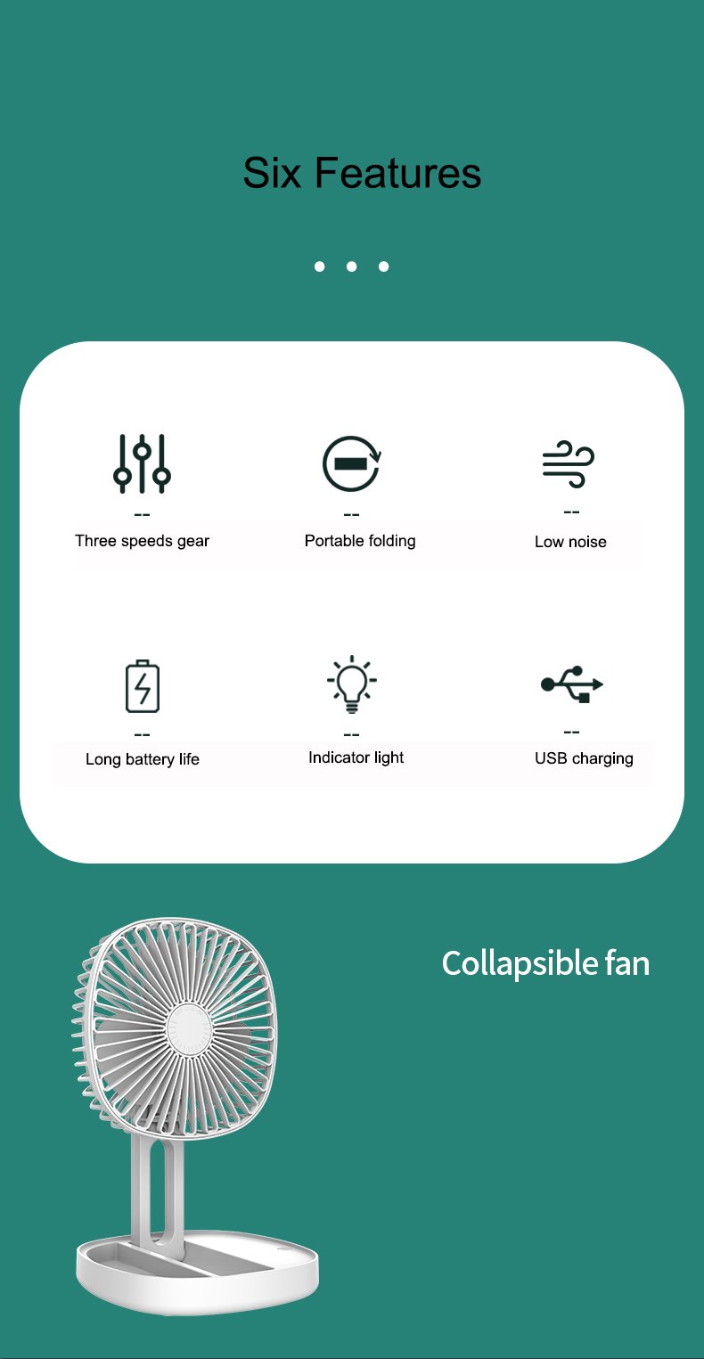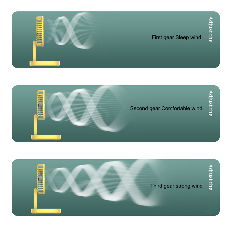 Three gears can be adjusted, and the small fan blade has a long angle design to increase the air supply distance
