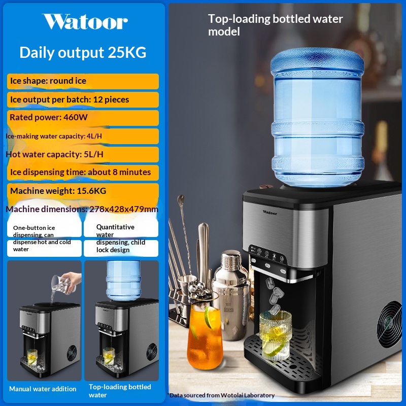 Style: Colorful dual-function ice maker that simultaneously provides both cold and hot water—top-loading bottled water model
