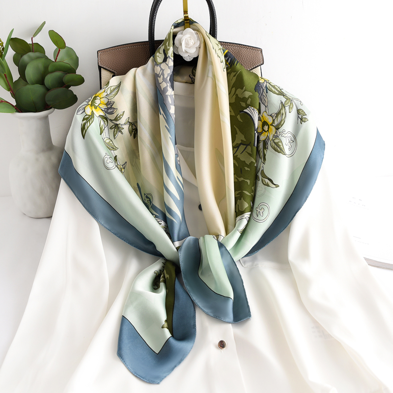Name: Silk scarfMaterial: Artificial silkColor: MulticolorProcess: PrintingFiber content: 96%Size: 90*90CMThickness: Thin
