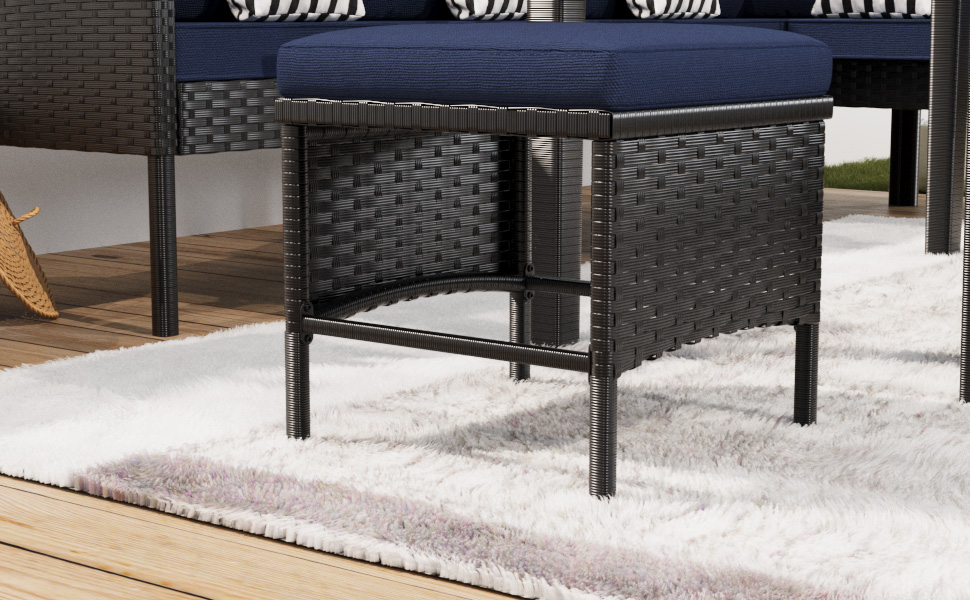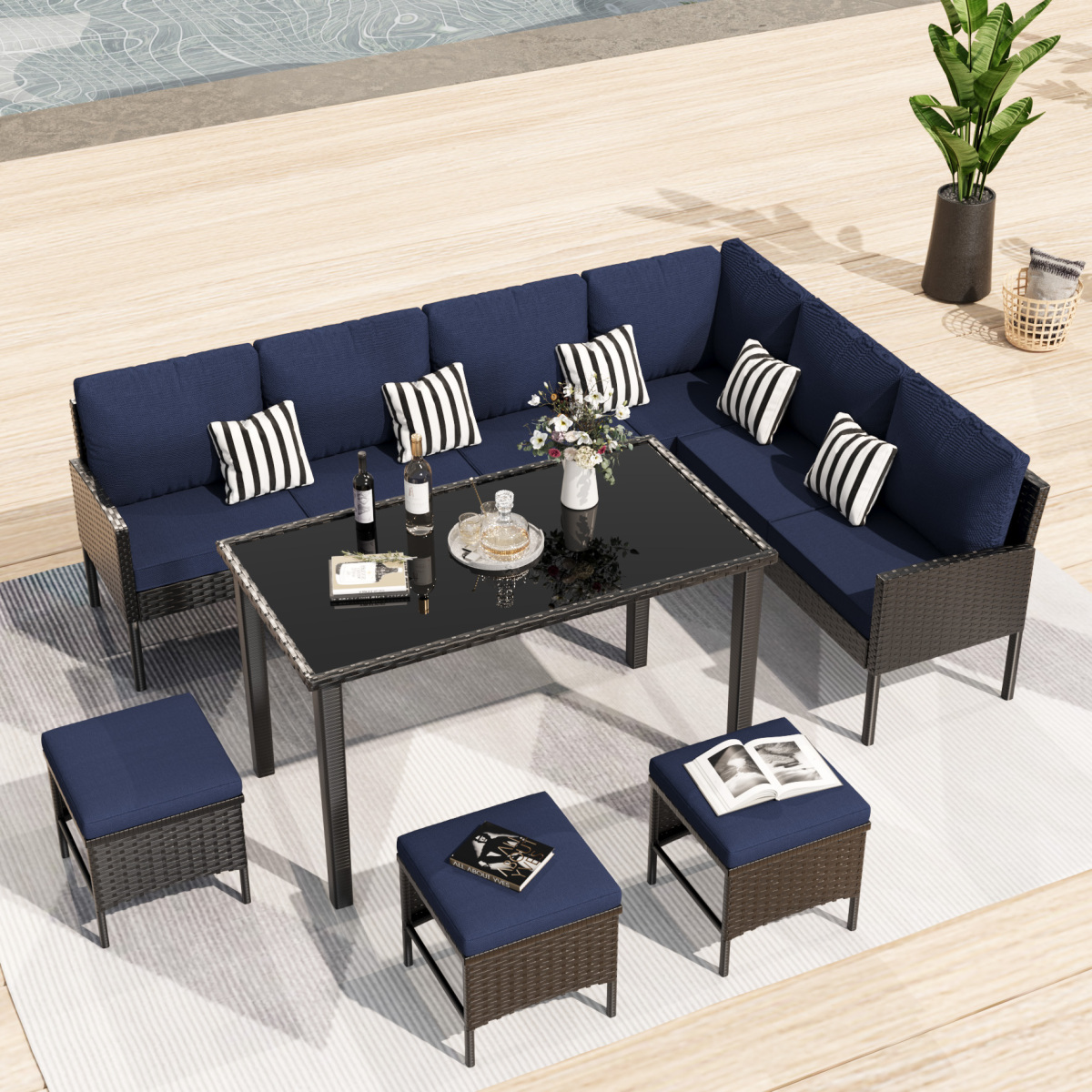 Product Name:Small space patio furniture 7-piece outdoor furniture set, backyard furniture set, waterproof seat cushion, glass table, space saving, suitable for backyard, terrace or garden,Dark blue