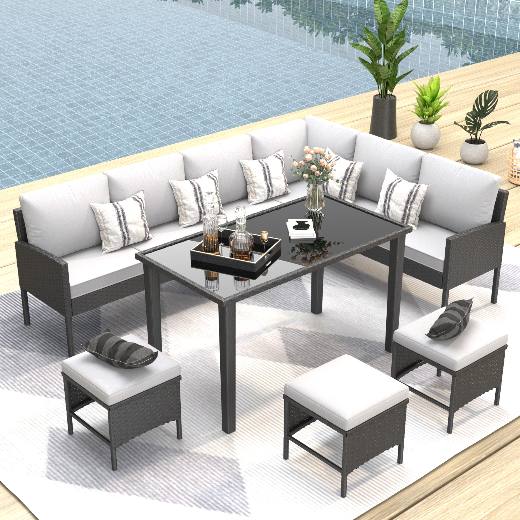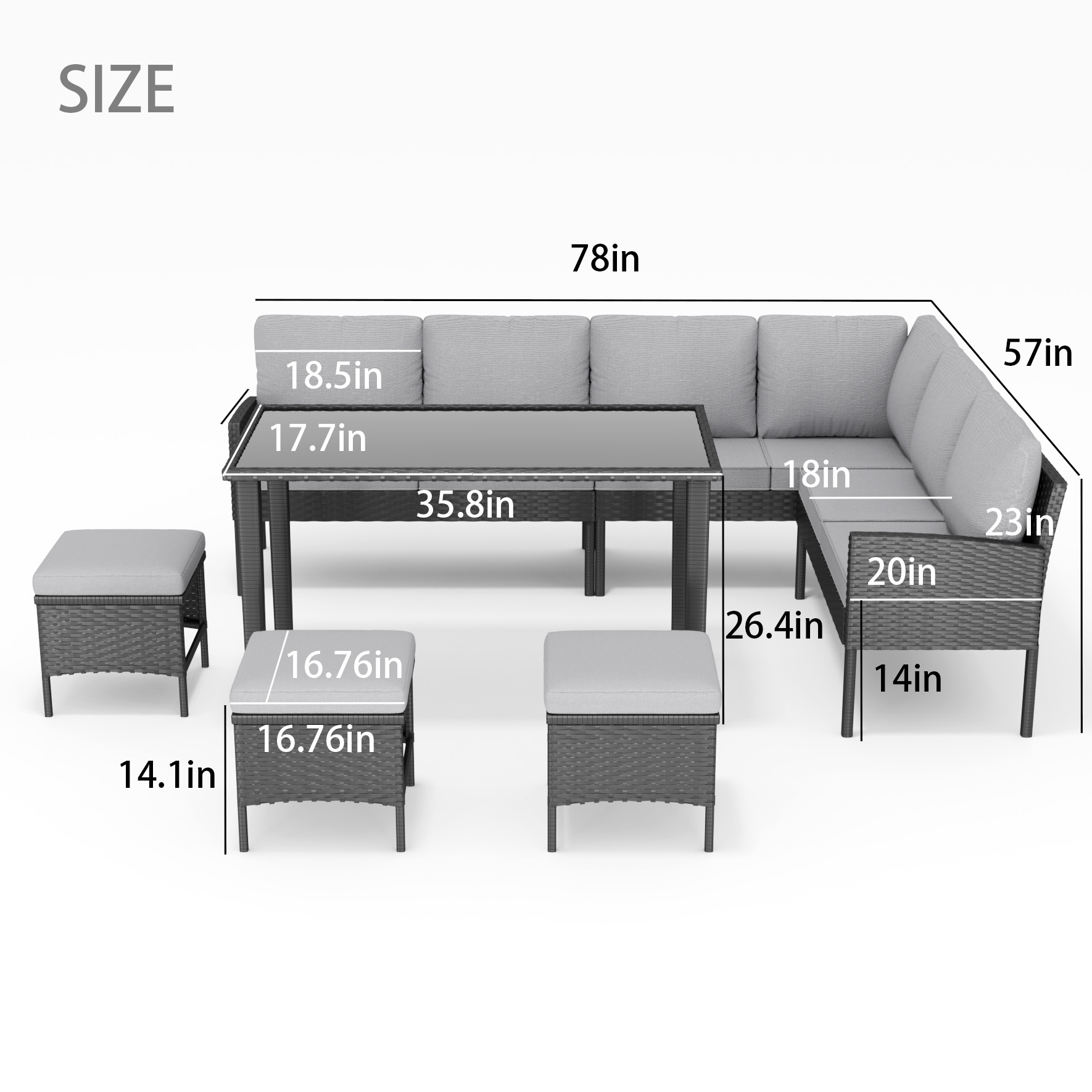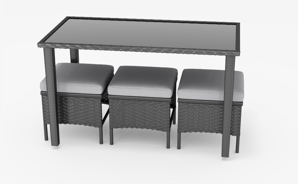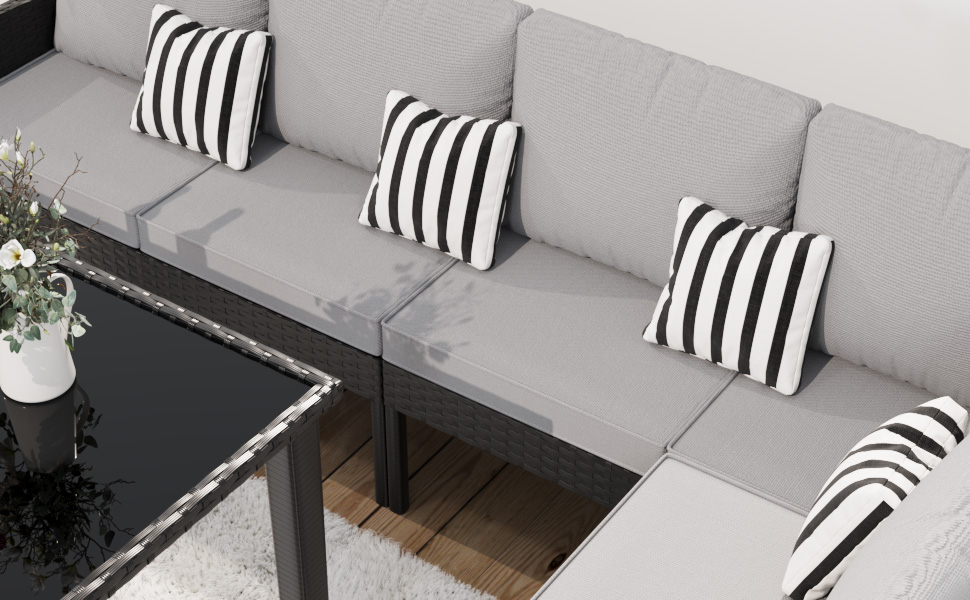 Product Name:Small space patio furniture 7-piece outdoor furniture set, backyard furniture set, waterproof seat cushion, glass table, space saving, suitable for backyard, terrace or garden,Gray