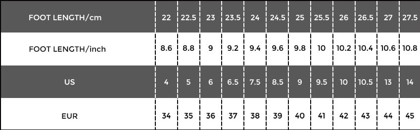 Size: 33, 34, 35, 36, 37, 38, 39, 40, 41, 42, 43, 44, 45
