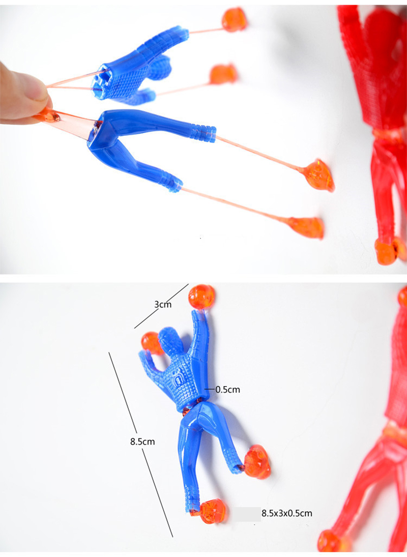Throw the villain on the smooth and clean upright desktop wall, glass (on the window), and the door will automatically flip down the bucket. You can do the tricky scrolling on the wall like a rock climber without falling. It is absolutely fun and attractive. After it is soiled, please wash it and dry it to play. This toy is available for both young and old.