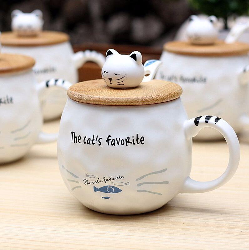 Smallcartoon ceramic cup Japanesestudent mug with lid Couple breakfast cup Small glass