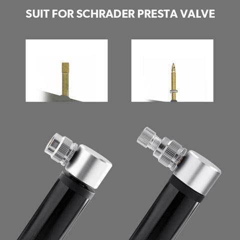SCHRADER&PRESTA VALVE PUMP IN: No need to check compatibility with bicycles. This bicycle pump is equipped with Presta and Schrader valves to inflate any tire.