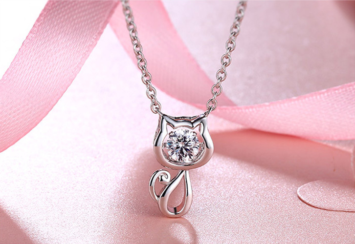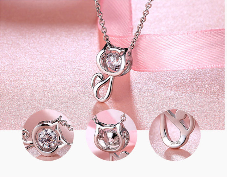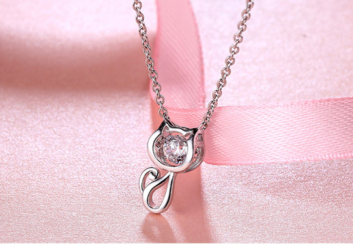 SmallSensen smart kitten silver necklace simple student pendant female Kitty send girlfriend birthday gift