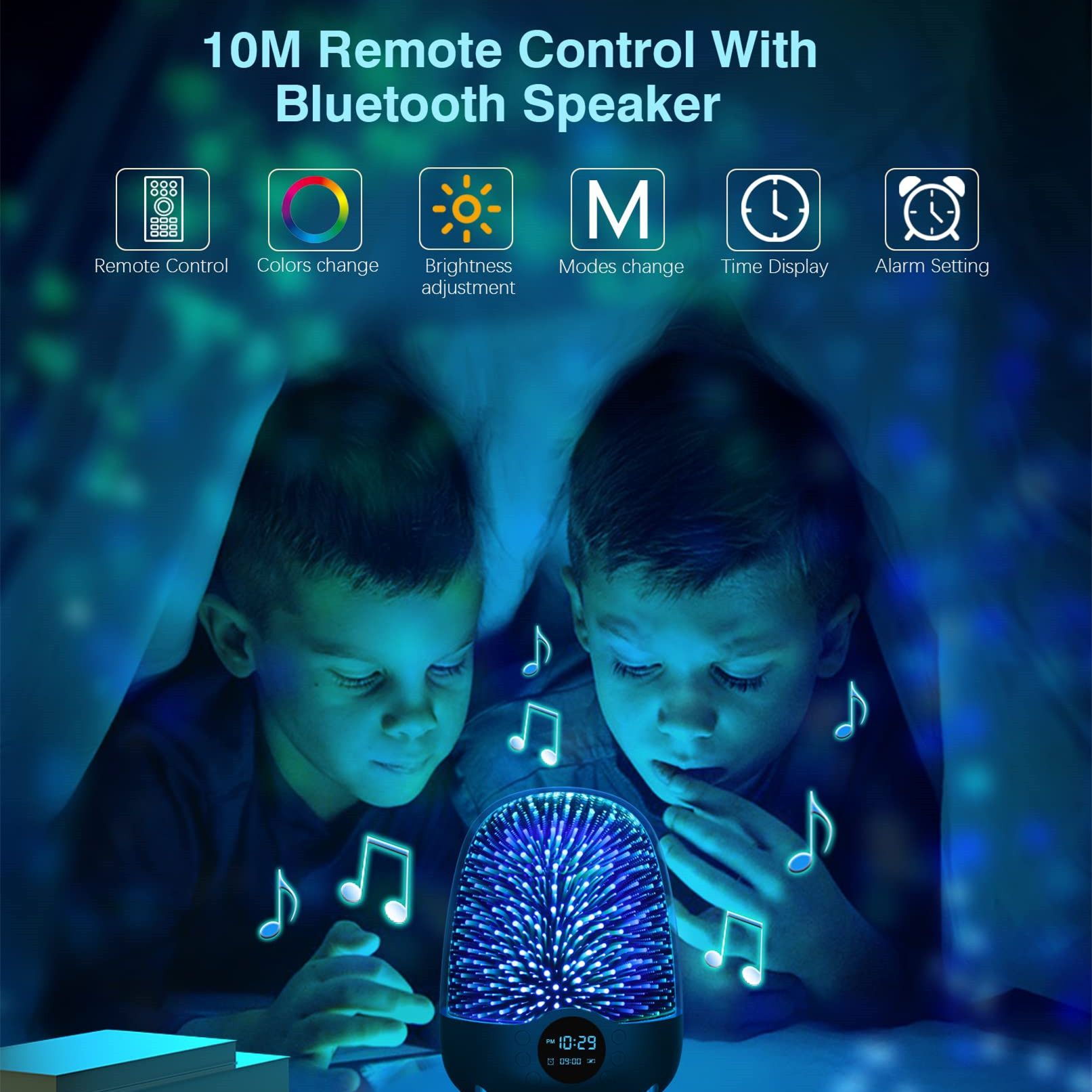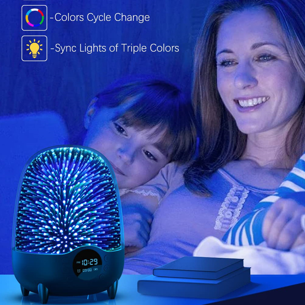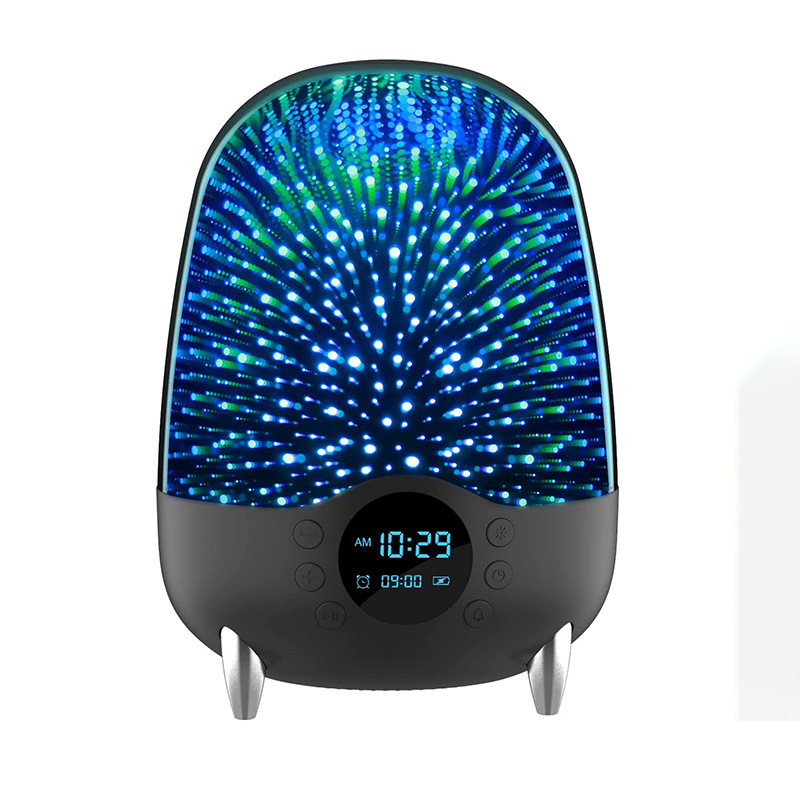 Product features: Bluetooth 5.0, microphone call intercom, TF, FM, AUX, music playback, clock alarm display, 3D colorful lighting effects
