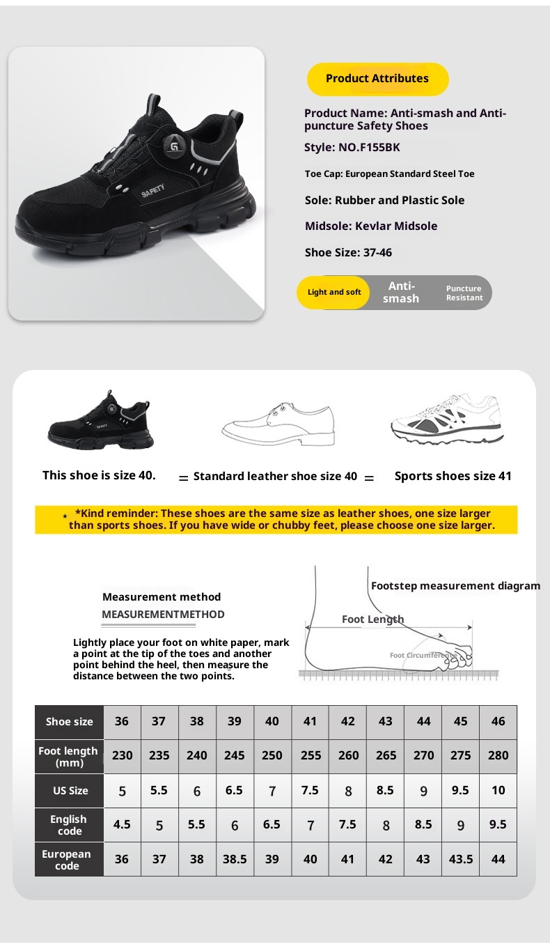 Smart Buckle Labor Protection Anti-smash Steel Toe Protective Shoes
