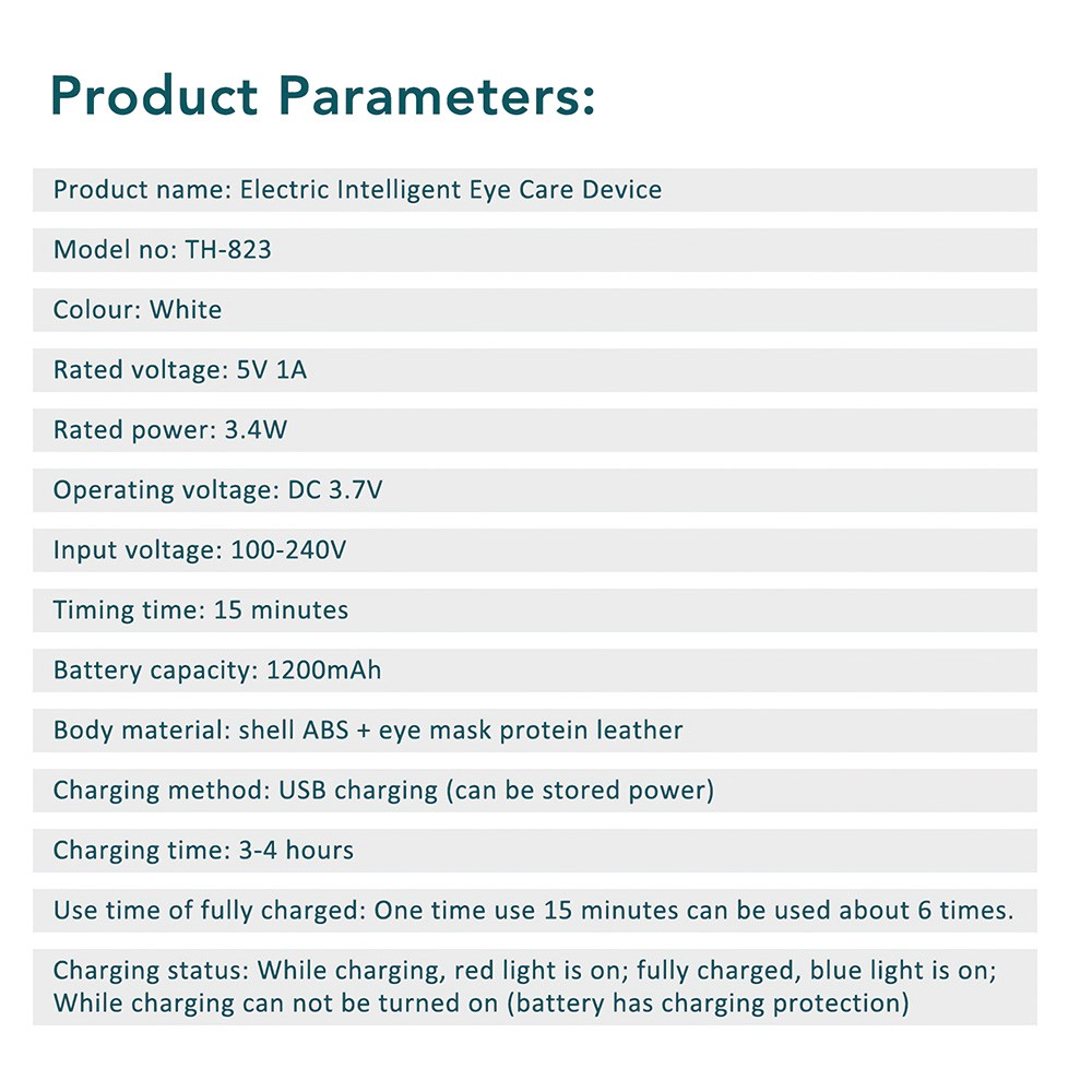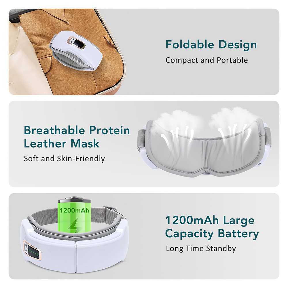 7. Equipped with a 1200mAh lithium battery, this rechargeable eye care device ensures extended use, perfect for daily relaxation and travel needs.