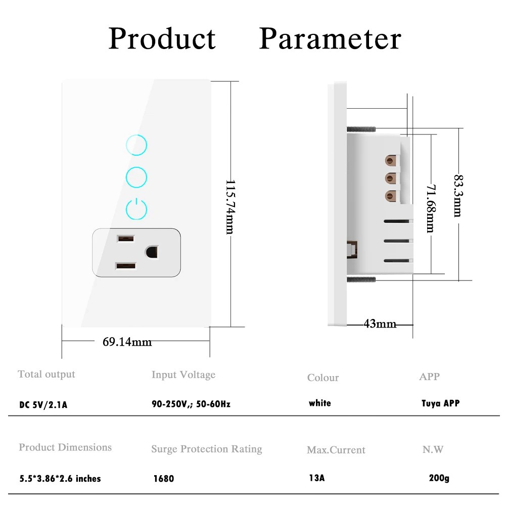 Product information:Application Scope: Household Rated Power: 3250 Size: 135*79 * 51mm Standard type: American Standard