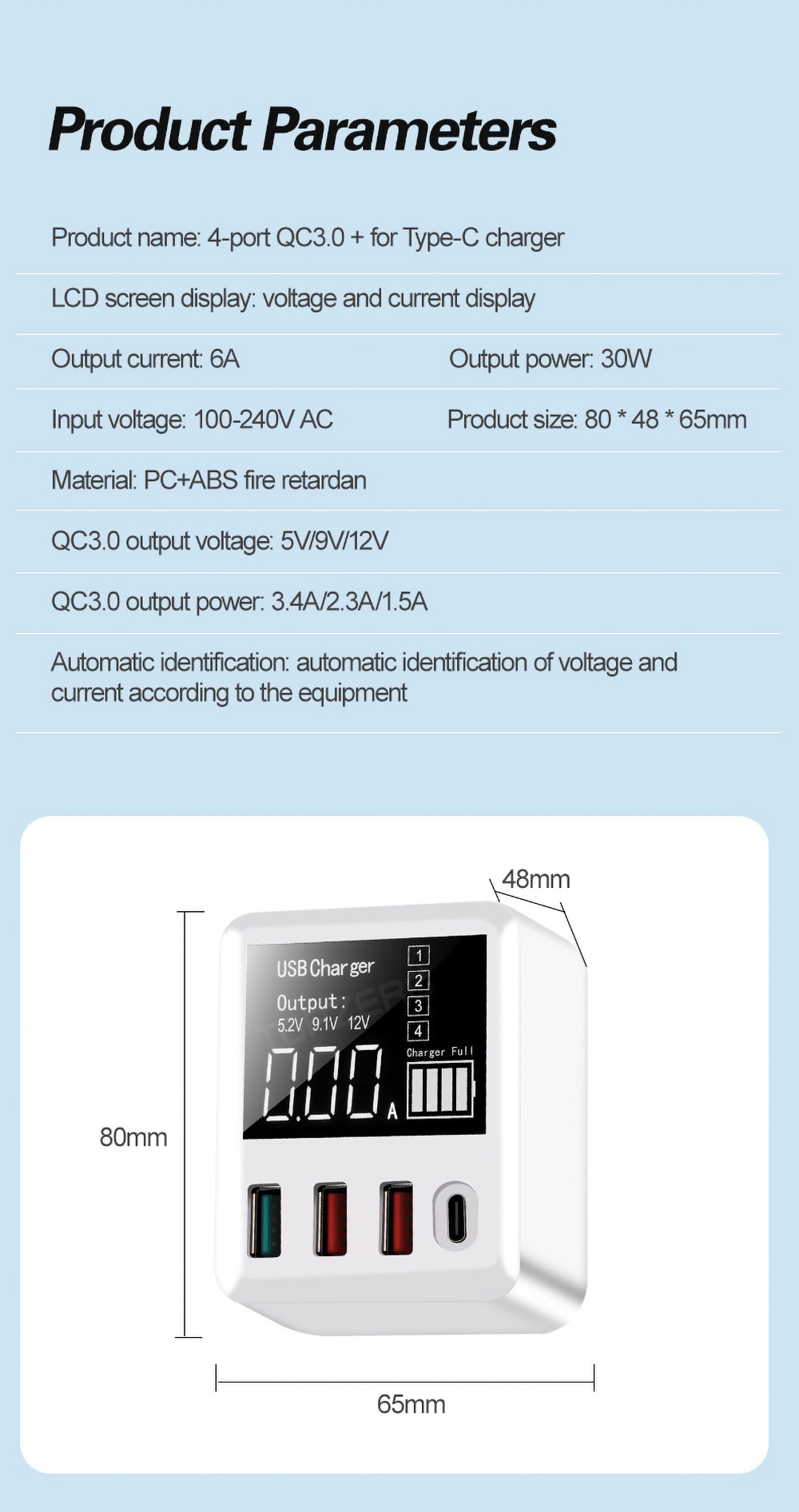 QC3.0 output: 5V3.4A/9V2A/12V1.5A