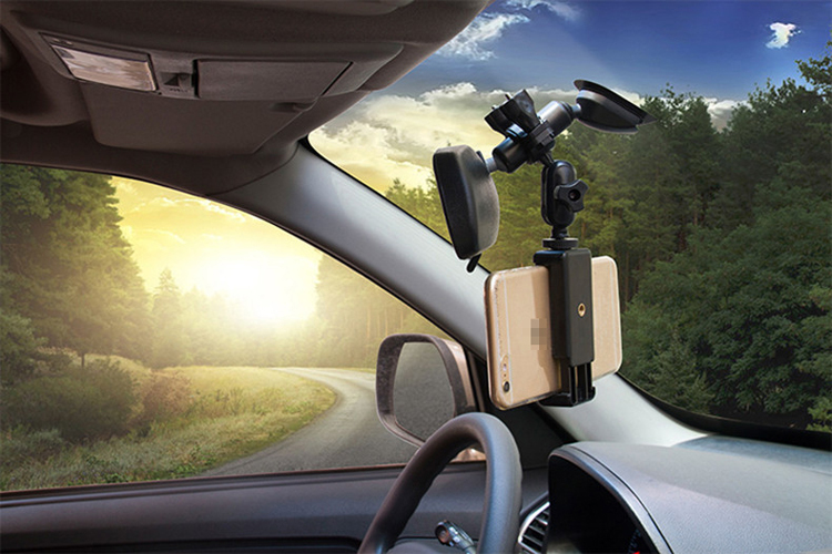 -- install the phone on the rearview mirror lever so that you can drive without blocking your view