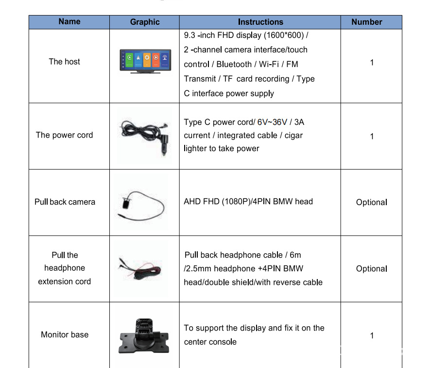 Color: HD cable 10.26inch one for one