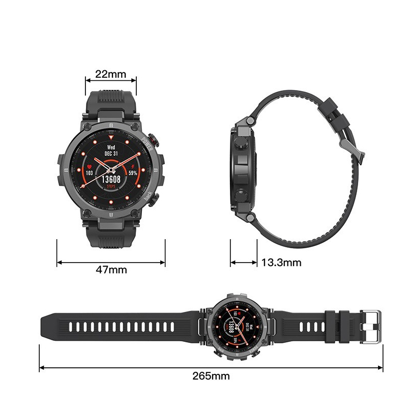 Additional functions; step counter, smart reminder, information push, sleep analysis, music control, camera control, weather application, waterproof, dustproof and anti-collision