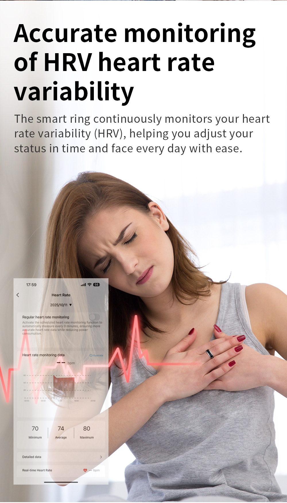 • Heart Rate Monitoring — Continuous 24/7 heart rate tracking